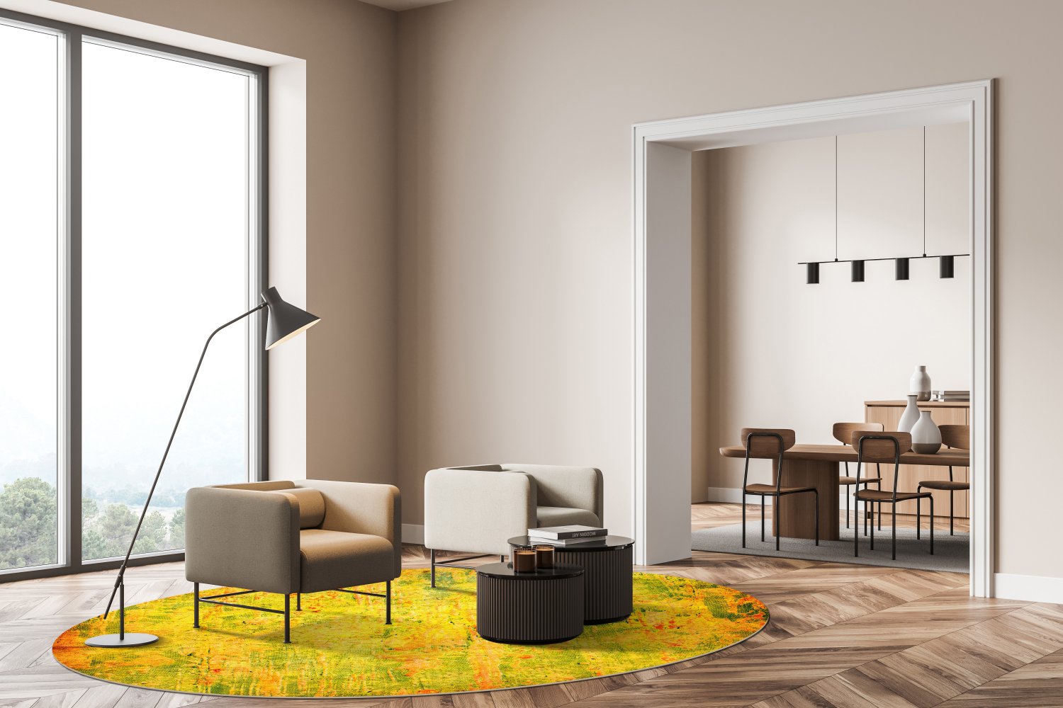 Moderne tæppe som er en del af Trendcarpet Art Line. Anvendes som et tæppe til dagligstuen eller et andet rum hvor det får den opmærksomhed, det fortjener. Et Wilton-tæppe der er inspireret af nutidens designere og moderne mønstre. Kvaliteten er meget høj og prisen er lav da tæppet maskinvæves, hvilket indebærer, at tæppets pris bliver billigere end hvis det blev håndlavet.