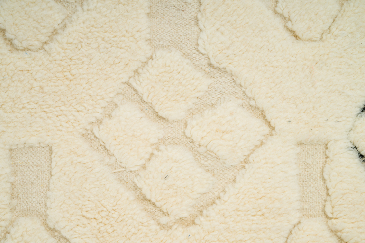 Ulden fra fårene i Atlasbjergene er virkelig enestående og et Beni Ourain tæppe fremstilles kun af denne rene uld og dens naturlige farver, der er både hvide, elfenbenshvide og naturfarvede. Et ægte Beni Ourain tæppe er vævet med enkle og avancerede mønstre og er stærkt eftertragtet af designere og forbrugere i hele verden. Et marokkansk Beni Ourain tæppe er et kunstværk på gulvet. Hvis det passes korrekt vil det beholde sine smukke farver, ulden bliver ikke slidt op. Det bliver et tæppe der føres videre i generationer.