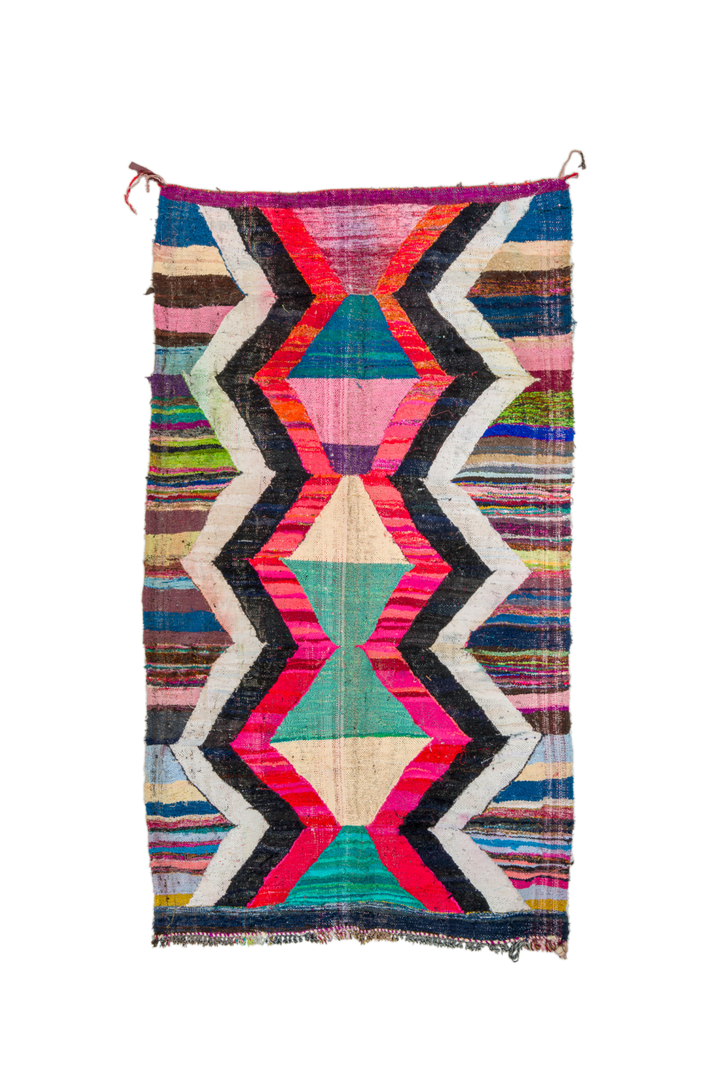 Boucehrouite-tæppet er endnu et tæppe i rækken af fantastiske tæppekreationer fra Marokko. Boucherouite tæppet er et genbrugstæppe der laves af tidligere anvendte tekstiler, som uld, bomuld, garn, syntetiske fibre og andre tekstiler der kan genanvendes. Disse vidunderlige marokkanske genbrugstæpper er en konsekvens af forandringen der er sket i de seneste årtier i de marokkanske landsbyer, hvor gamle nomadekulturer er erstattet af fast landbrug og andre moderne beskæftigelser i landsbyen. Det har ført til, at ulden fra fårene, der er materialet i Beni Ourain- og Azilal-tæpperne, er blevet endnu mere sjældne. Det er derfor blevet endnu vigtigere at benytte tidligere anvendte tekstiler og det gør kvinderne i de marokkanske landsbyer på en fremragende måde. Farverne og mønstrene i Boucherouite tæppet kender vi fra Azilal tæppet og præcis som dette hænger Boucherouite tæppet også på mange kunstudstilllinger rundt omkring i verden.