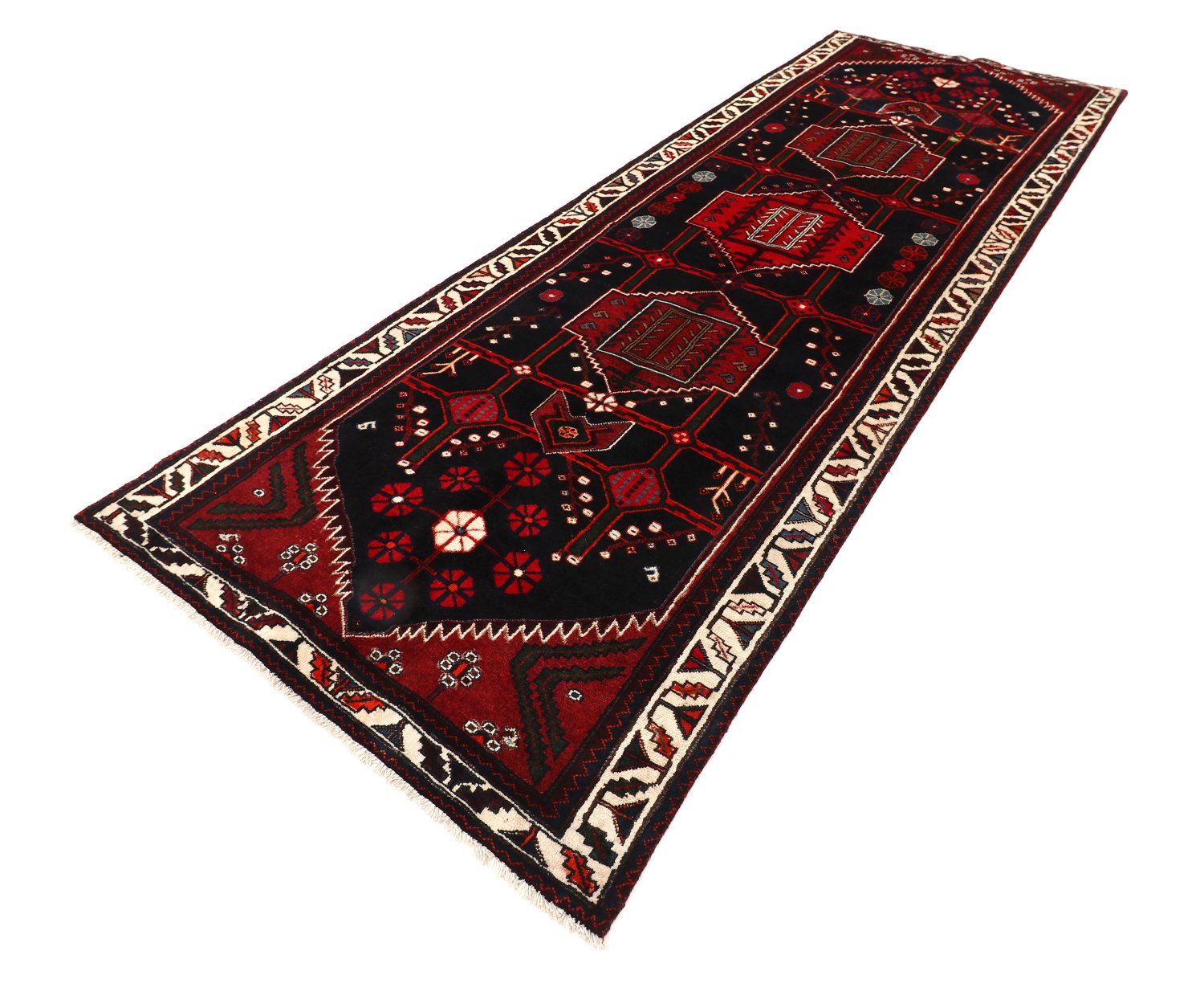 Hamedan‑tæpper kendes på deres markante geometriske mønstre, ofte med en centreret medaljon. Den tætte uldluv og håndknyttede konstruktion giver høj slidstyrke – ideelt til stue, entré og spisestue. Det klassiske udtryk forener traditionelt håndværk med et moderne præg og bliver et naturligt blikfang i hjemmet.