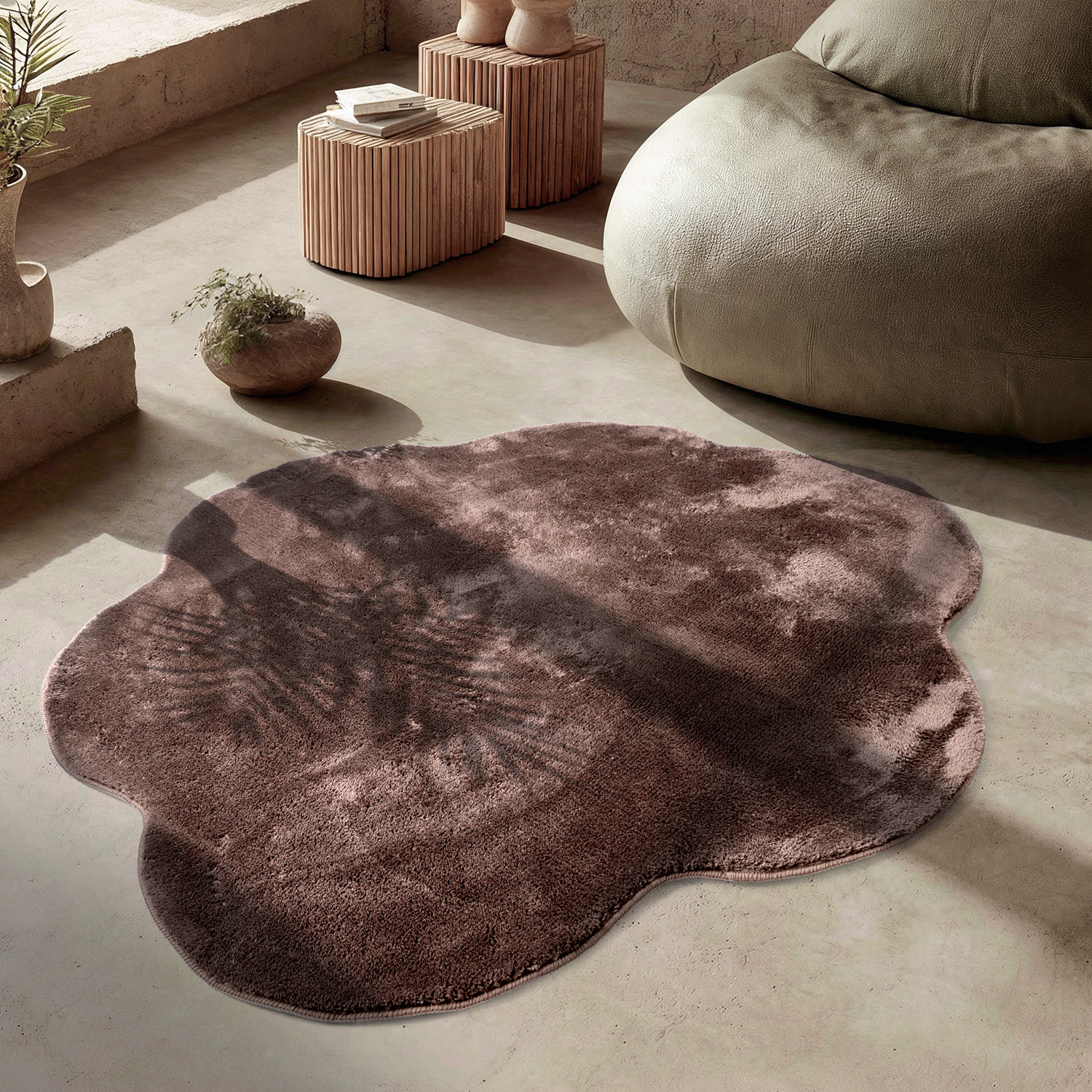 Rundt Bølget Tæppe - Aranga Super Soft Fur (mørkebrun)