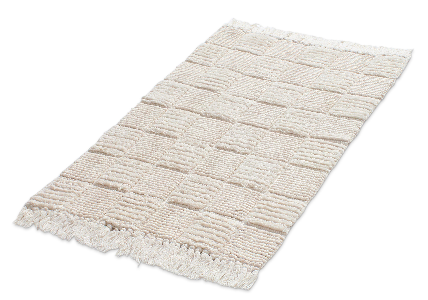 Håndvævet badeværelsesmåtte i 100 % bomuld – den perfekte kombination af luksus og funktionalitet til dit badeværelse.