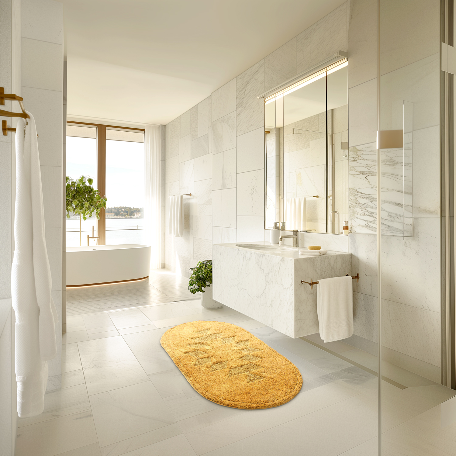 Tuftet badeværelsestæppe i 100% bomuld - den perfekte kombination af luksus og funktionalitet til dit badeværelse.