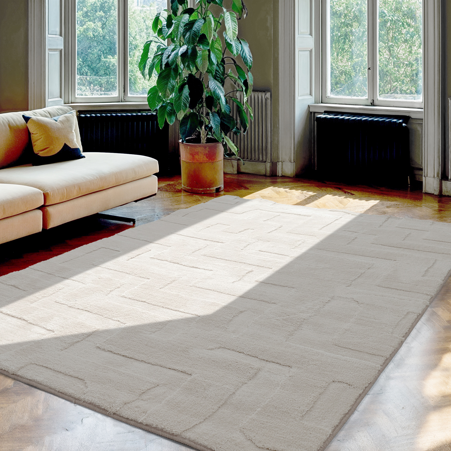 Elegant ryatæppe med high and low-struktur, der tilfører rummet et diskret mønster og dybde. Det tidløse design gør tæppet velegnet til alle indretningsstile – fra klassisk til moderne. Et stilfuldt tæppe, der kombinerer tekstur, komfort og form.