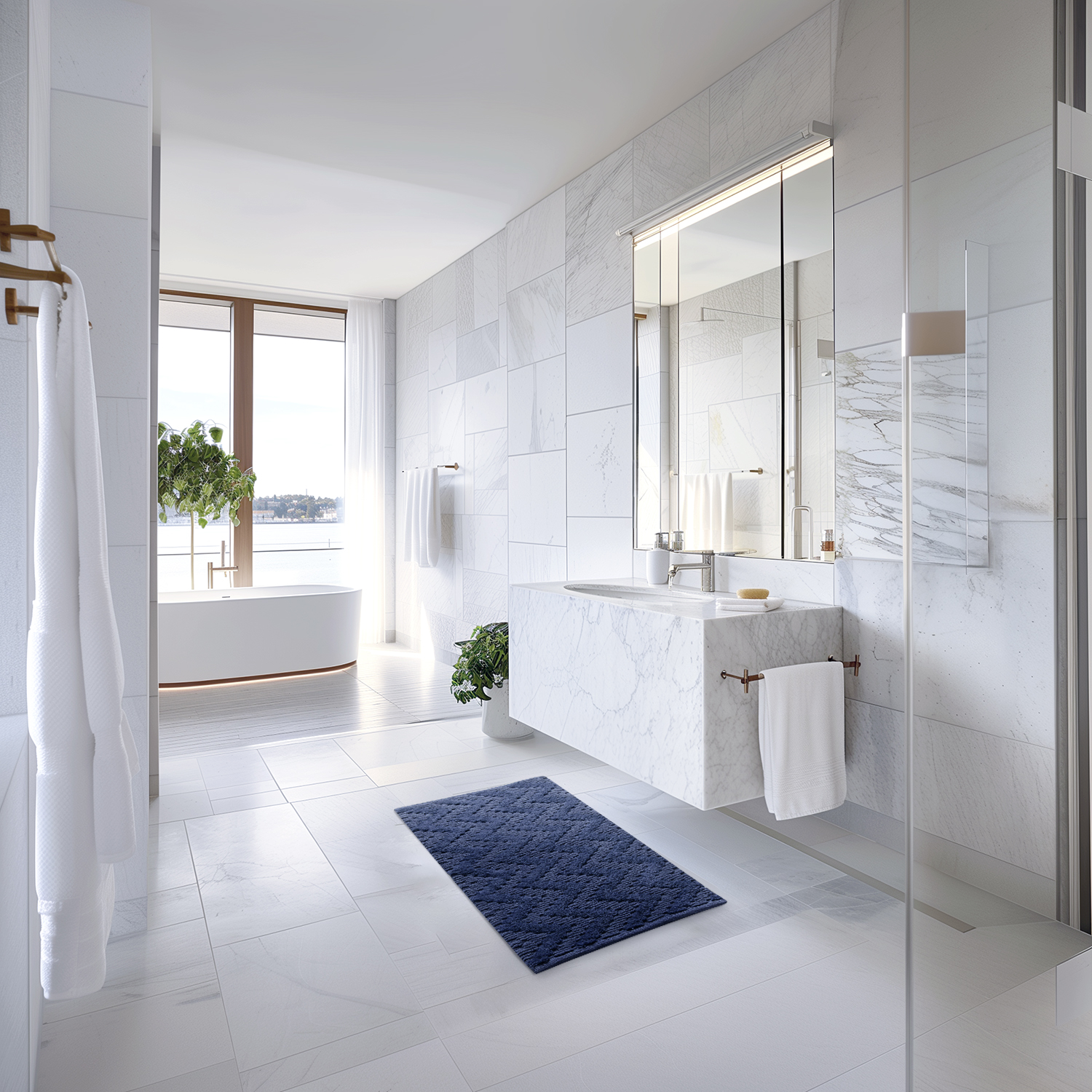 Håndvævet badeværelsesmåtte i 100 % bomuld – den perfekte kombination af luksus og funktionalitet til dit badeværelse.