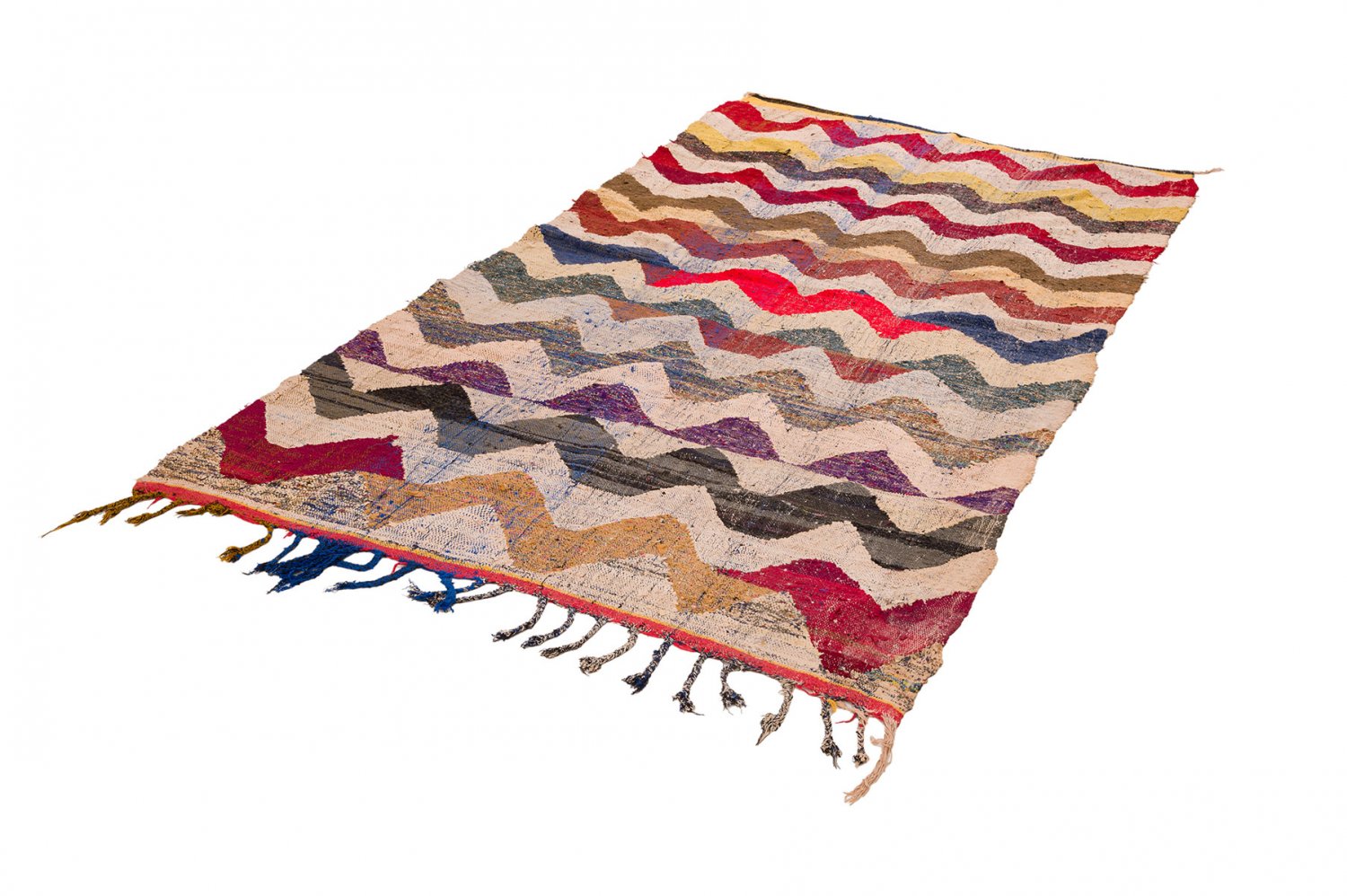 Boucehrouite-tæppet er endnu et tæppe i rækken af fantastiske tæppekreationer fra Marokko. Boucherouite tæppet er et genbrugstæppe der laves af tidligere anvendte tekstiler, som uld, bomuld, garn, syntetiske fibre og andre tekstiler der kan genanvendes. Disse vidunderlige marokkanske genbrugstæpper er en konsekvens af forandringen der er sket i de seneste årtier i de marokkanske landsbyer, hvor gamle nomadekulturer er erstattet af fast landbrug og andre moderne beskæftigelser i landsbyen. Det har ført til, at ulden fra fårene, der er materialet i Beni Ourain- og Azilal-tæpperne, er blevet endnu mere sjældne. Det er derfor blevet endnu vigtigere at benytte tidligere anvendte tekstiler og det gør kvinderne i de marokkanske landsbyer på en fremragende måde. Farverne og mønstrene i Boucherouite tæppet kender vi fra Azilal tæppet og præcis som dette hænger Boucherouite tæppet også på mange kunstudstilllinger rundt omkring i verden.