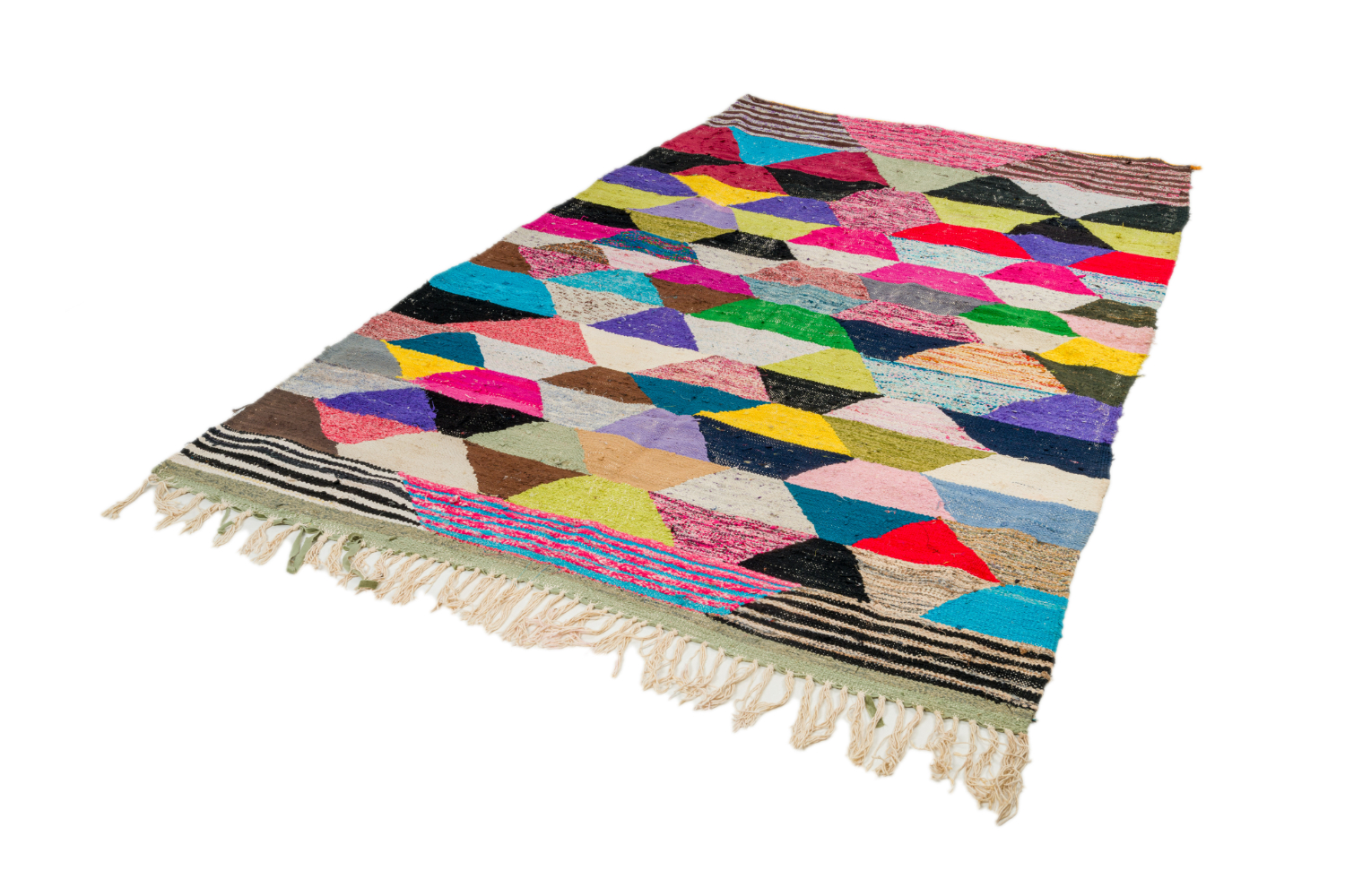 Boucehrouite-tæppet er endnu et tæppe i rækken af fantastiske tæppekreationer fra Marokko. Boucherouite tæppet er et genbrugstæppe der laves af tidligere anvendte tekstiler, som uld, bomuld, garn, syntetiske fibre og andre tekstiler der kan genanvendes. Disse vidunderlige marokkanske genbrugstæpper er en konsekvens af forandringen der er sket i de seneste årtier i de marokkanske landsbyer, hvor gamle nomadekulturer er erstattet af fast landbrug og andre moderne beskæftigelser i landsbyen. Det har ført til, at ulden fra fårene, der er materialet i Beni Ourain- og Azilal-tæpperne, er blevet endnu mere sjældne. Det er derfor blevet endnu vigtigere at benytte tidligere anvendte tekstiler og det gør kvinderne i de marokkanske landsbyer på en fremragende måde. Farverne og mønstrene i Boucherouite tæppet kender vi fra Azilal tæppet og præcis som dette hænger Boucherouite tæppet også på mange kunstudstilllinger rundt omkring i verden.