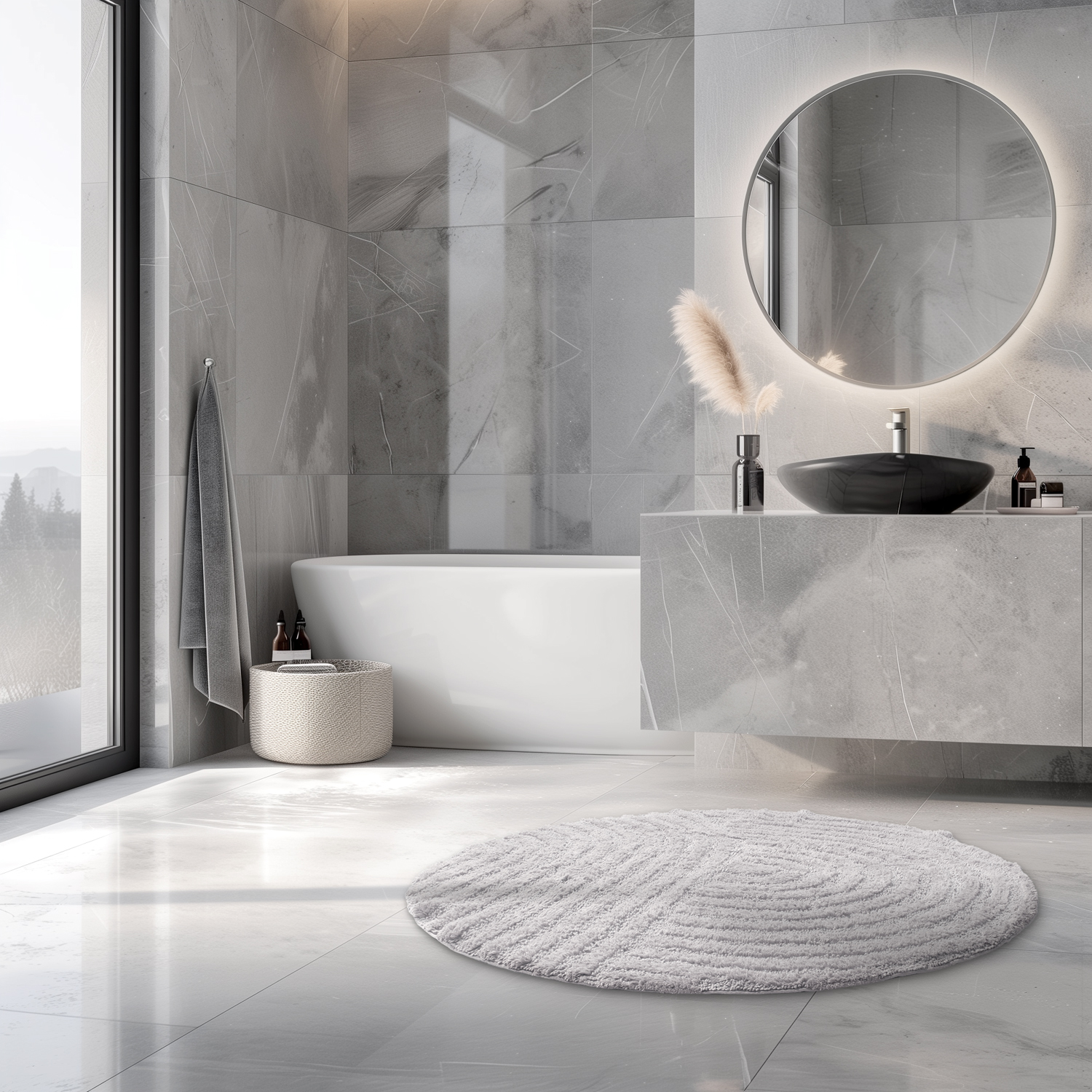 Tuftet badeværelsestæppe i 100% bomuld - den perfekte kombination af luksus og funktionalitet til dit badeværelse.