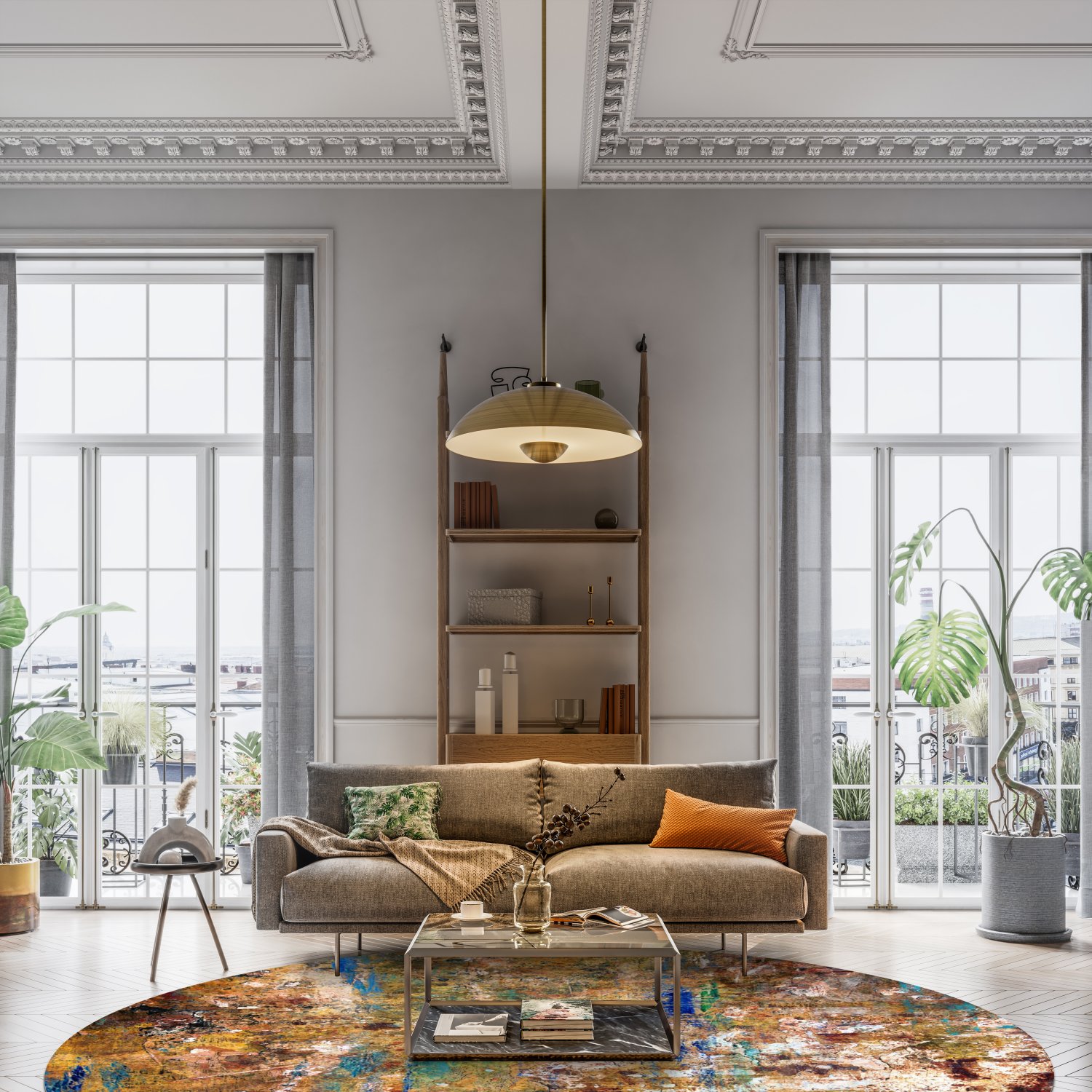 Rundt tæppe - Trepito (brun/blå/multi)
