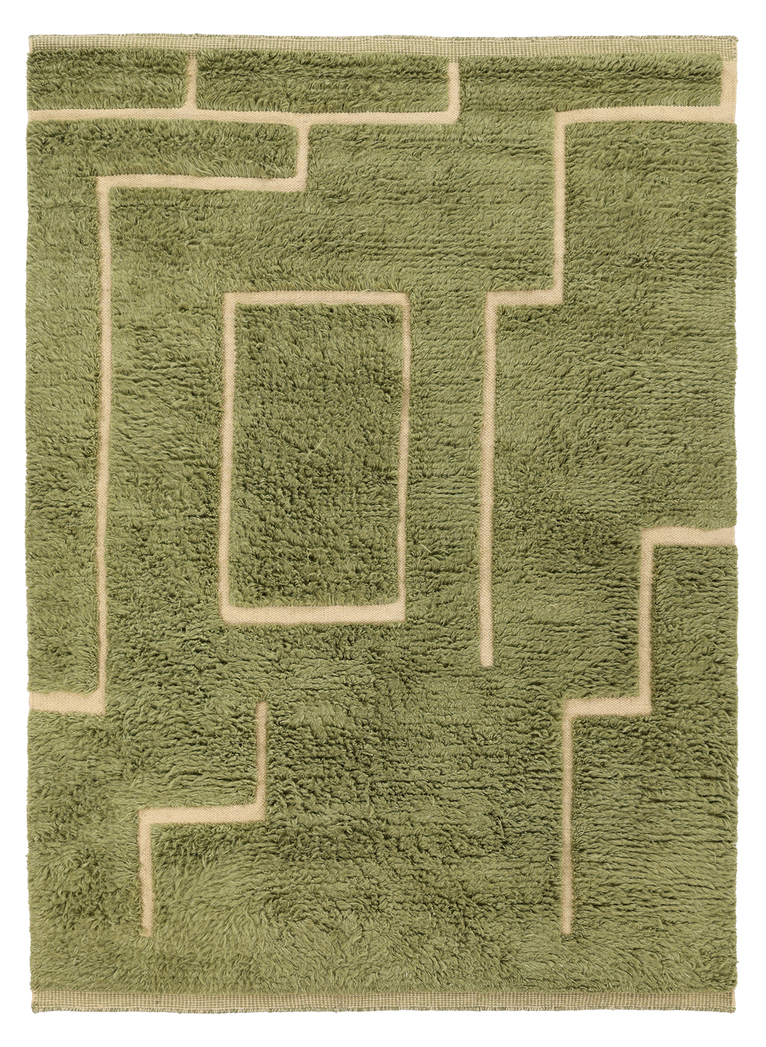 Ryatæpper - Kiberg Hand Woven Wool Shaggy (grøn)