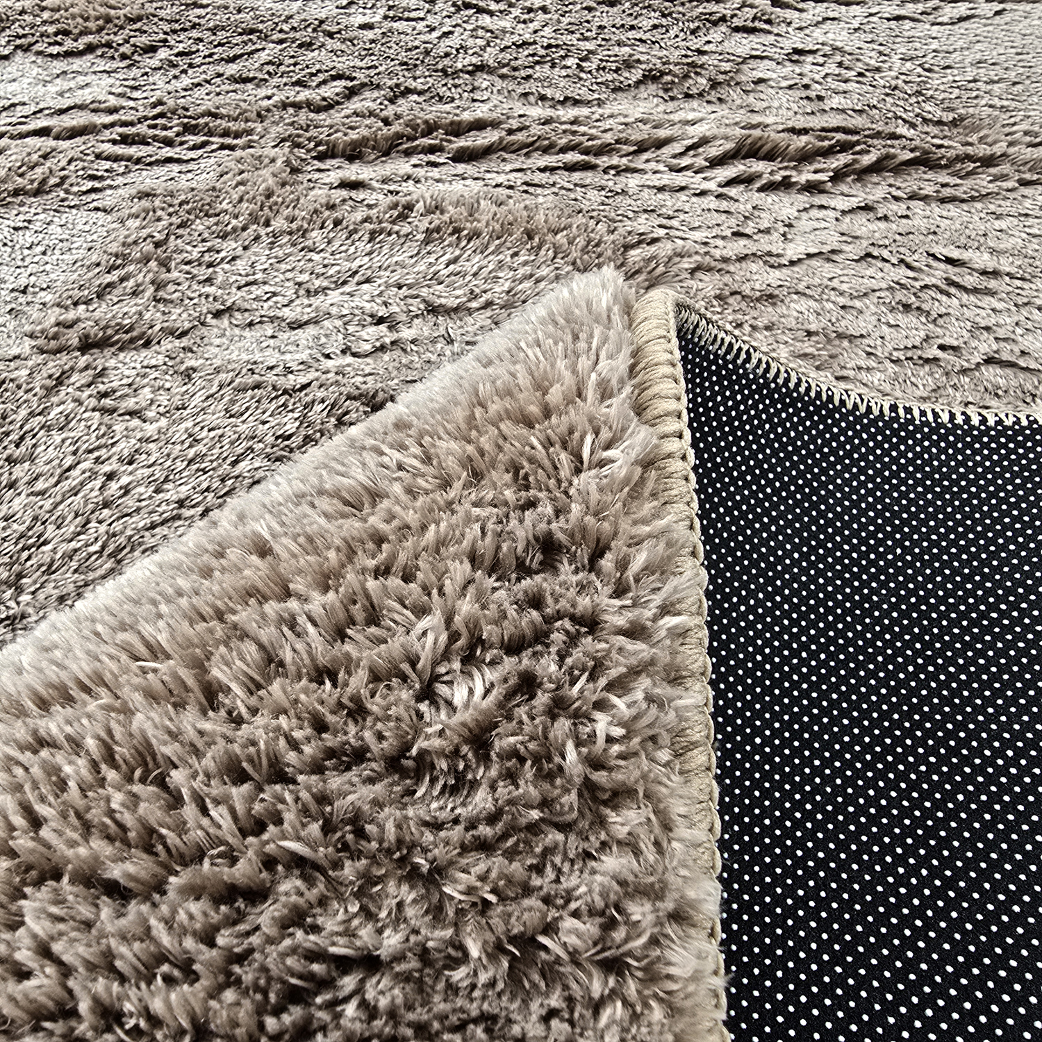 Blødt ryatæppe. Tæppet er utroligt glat, som kaninpels, og den tynde, smukke og tætte luv skaber en bølgende overflade alt efter, hvilken retning luven stryges i.
