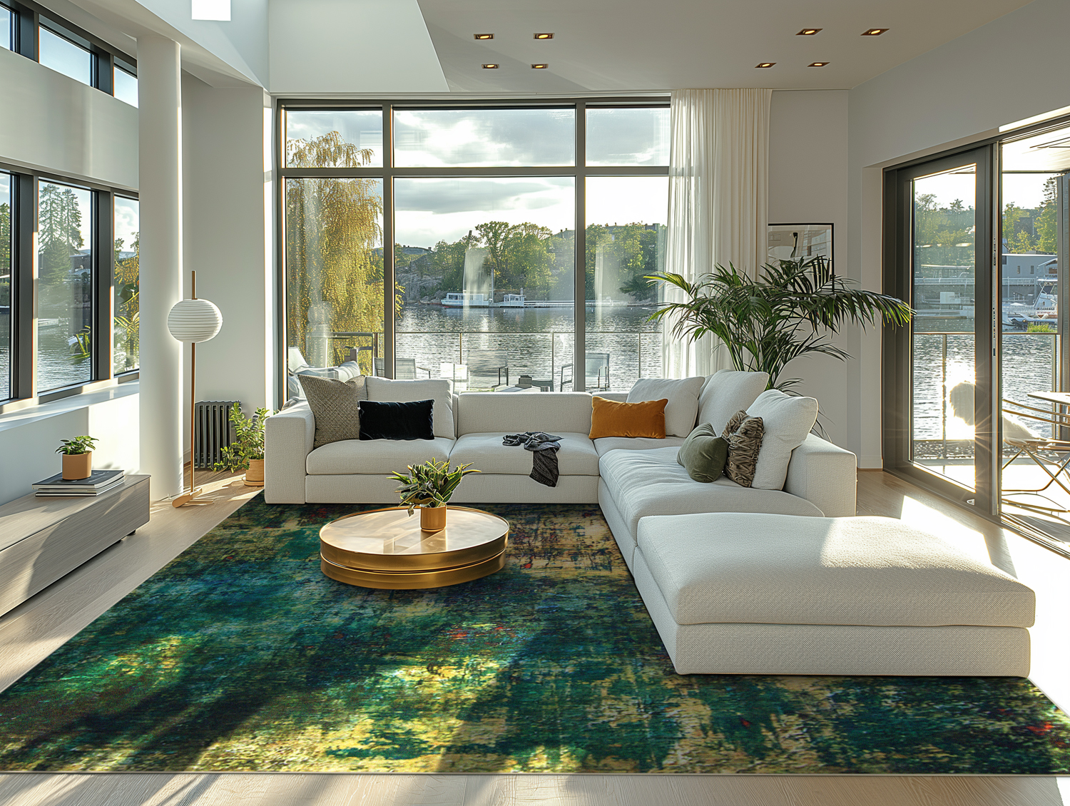 Moderne tæppe som er en del af Trendcarpet Art Line. Anvendes som et tæppe til dagligstuen eller et andet rum hvor det får den opmærksomhed, det fortjener. Et Wilton-tæppe der er inspireret af nutidens designere og moderne mønstre. Kvaliteten er meget høj og prisen er lav da tæppet maskinvæves, hvilket indebærer, at tæppets pris bliver billigere end hvis det blev håndlavet.