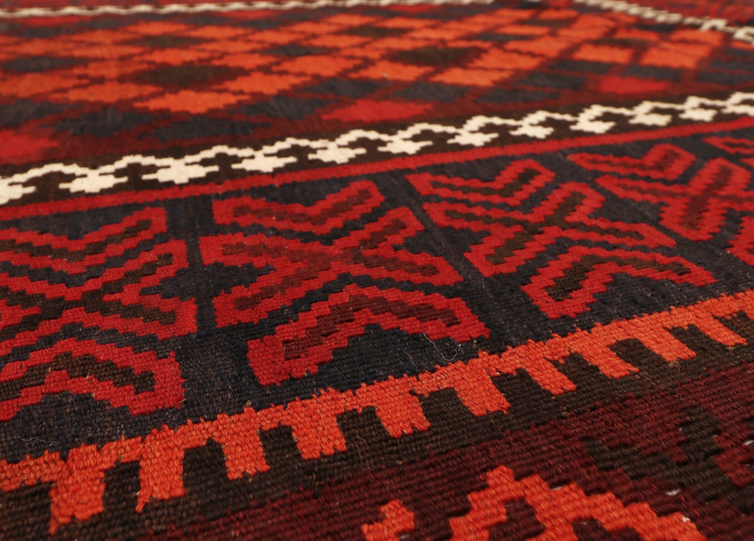 Orientalsk kelimtæppe forener en fladvævet struktur med naturlig uld – let og fleksibelt, nemt at placere i entré, stue eller under spisebordet. Den slanke profil gør det også oplagt til layering oven på større tæpper.