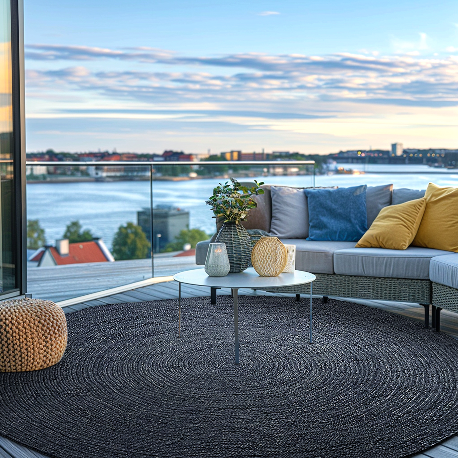 Rund jutetæppe - Amasia (mørkeblå)