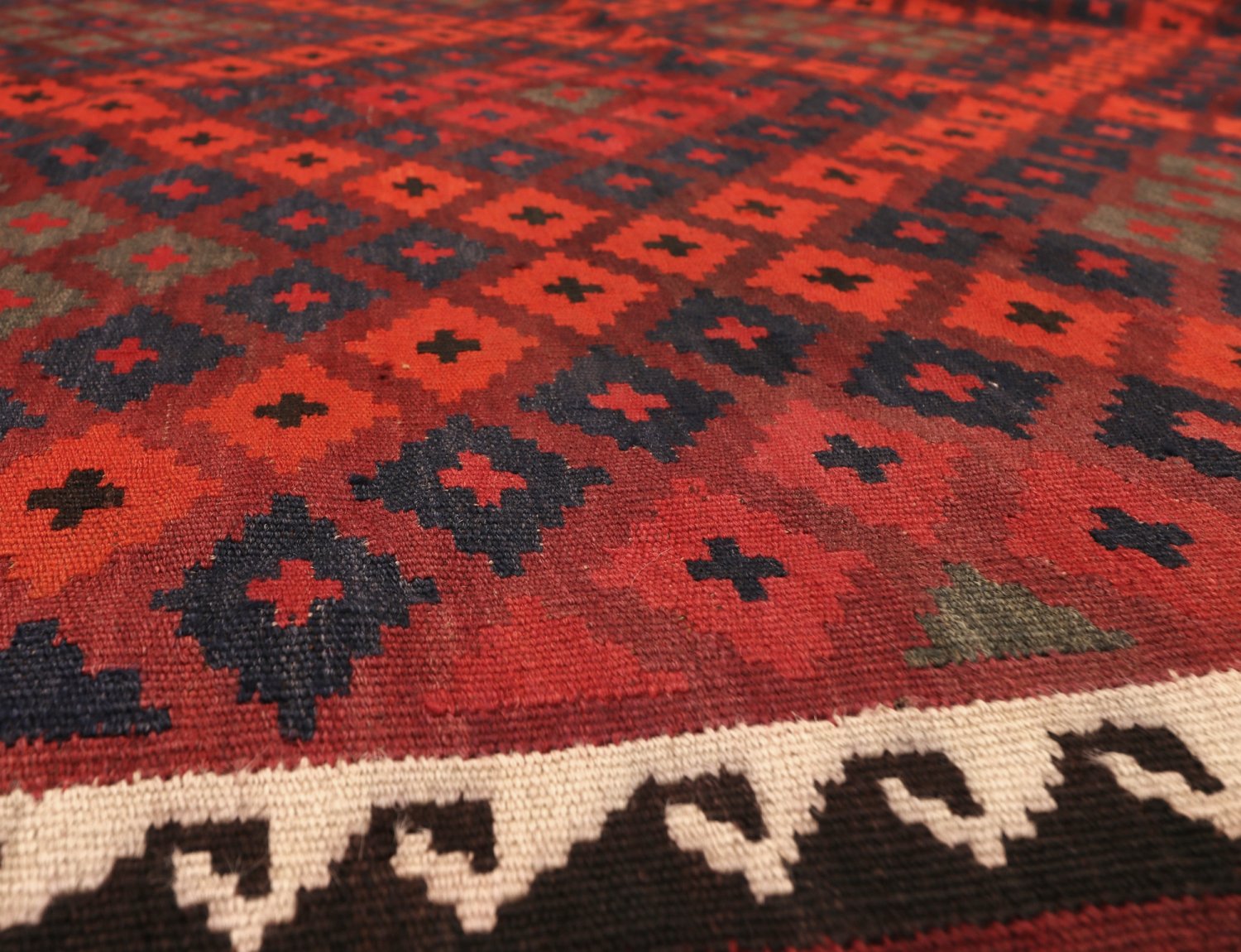 Orientalsk kelimtæppe forener en fladvævet struktur med naturlig uld – let og fleksibelt, nemt at placere i entré, stue eller under spisebordet. Den slanke profil gør det også oplagt til layering oven på større tæpper.
