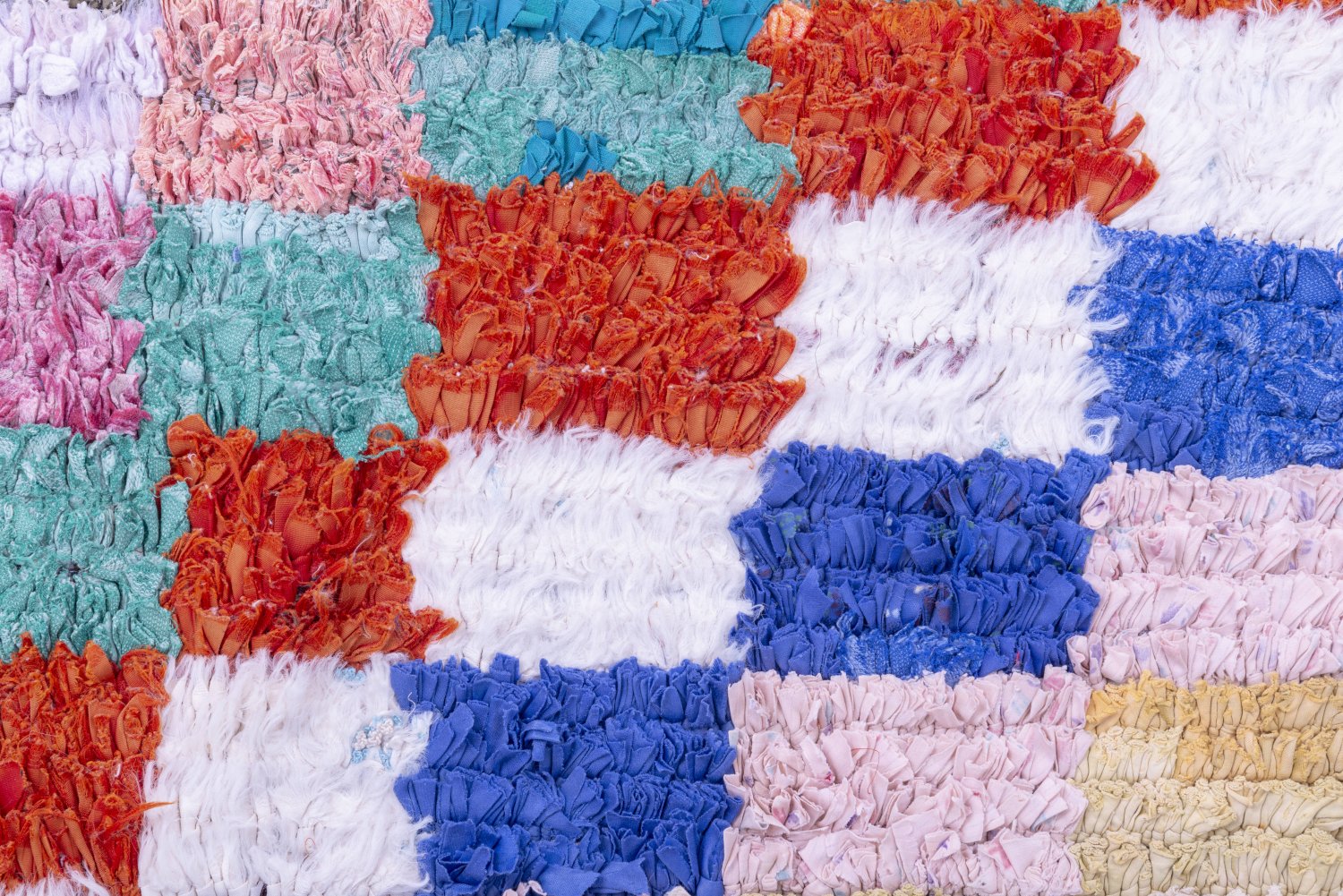 Boucehrouite-tæppet er endnu et tæppe i rækken af fantastiske tæppekreationer fra Marokko. Boucherouite tæppet er et genbrugstæppe der laves af tidligere anvendte tekstiler, som uld, bomuld, garn, syntetiske fibre og andre tekstiler der kan genanvendes. Disse vidunderlige marokkanske genbrugstæpper er en konsekvens af forandringen der er sket i de seneste årtier i de marokkanske landsbyer, hvor gamle nomadekulturer er erstattet af fast landbrug og andre moderne beskæftigelser i landsbyen. Det har ført til, at ulden fra fårene, der er materialet i Beni Ourain- og Azilal-tæpperne, er blevet endnu mere sjældne. Det er derfor blevet endnu vigtigere at benytte tidligere anvendte tekstiler og det gør kvinderne i de marokkanske landsbyer på en fremragende måde. Farverne og mønstrene i Boucherouite tæppet kender vi fra Azilal tæppet og præcis som dette hænger Boucherouite tæppet også på mange kunstudstilllinger rundt omkring i verden.