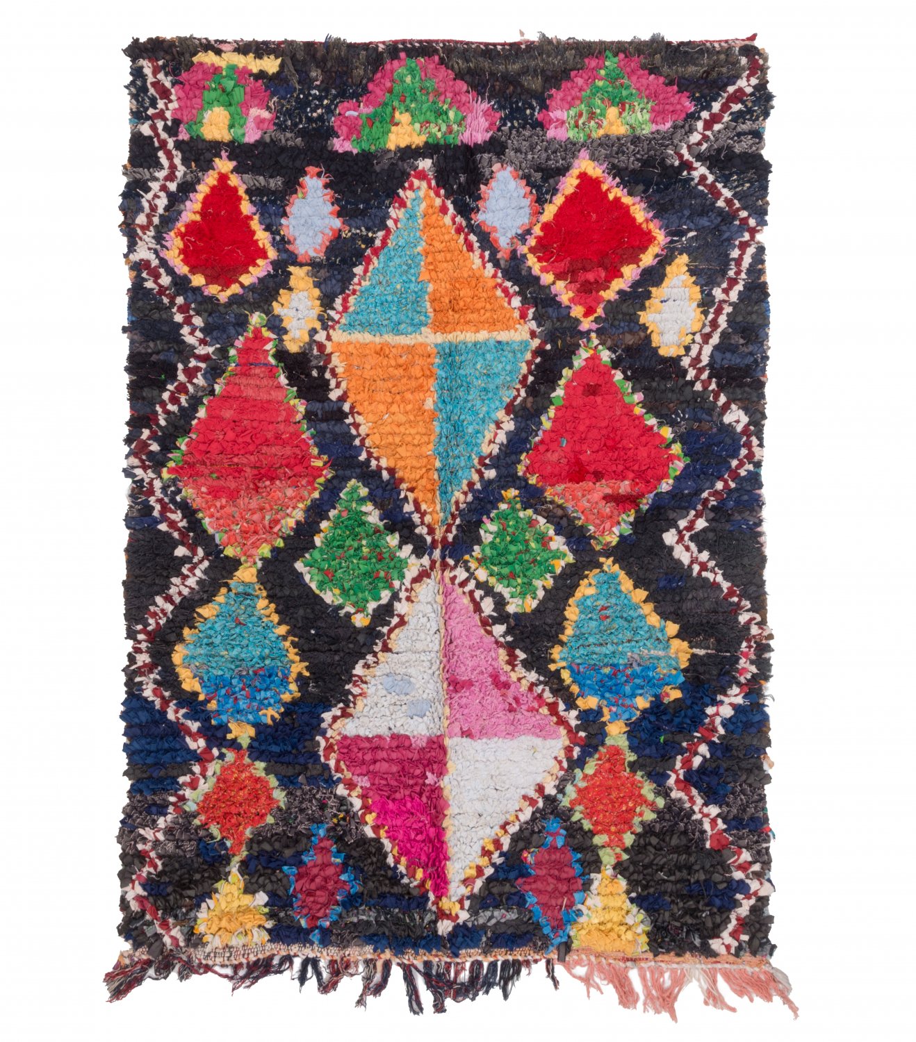 Boucehrouite-tæppet er endnu et tæppe i rækken af fantastiske tæppekreationer fra Marokko. Boucherouite tæppet er et genbrugstæppe der laves af tidligere anvendte tekstiler, som uld, bomuld, garn, syntetiske fibre og andre tekstiler der kan genanvendes. Disse vidunderlige marokkanske genbrugstæpper er en konsekvens af forandringen der er sket i de seneste årtier i de marokkanske landsbyer, hvor gamle nomadekulturer er erstattet af fast landbrug og andre moderne beskæftigelser i landsbyen. Det har ført til, at ulden fra fårene, der er materialet i Beni Ourain- og Azilal-tæpperne, er blevet endnu mere sjældne. Det er derfor blevet endnu vigtigere at benytte tidligere anvendte tekstiler og det gør kvinderne i de marokkanske landsbyer på en fremragende måde. Farverne og mønstrene i Boucherouite tæppet kender vi fra Azilal tæppet og præcis som dette hænger Boucherouite tæppet også på mange kunstudstilllinger rundt omkring i verden.