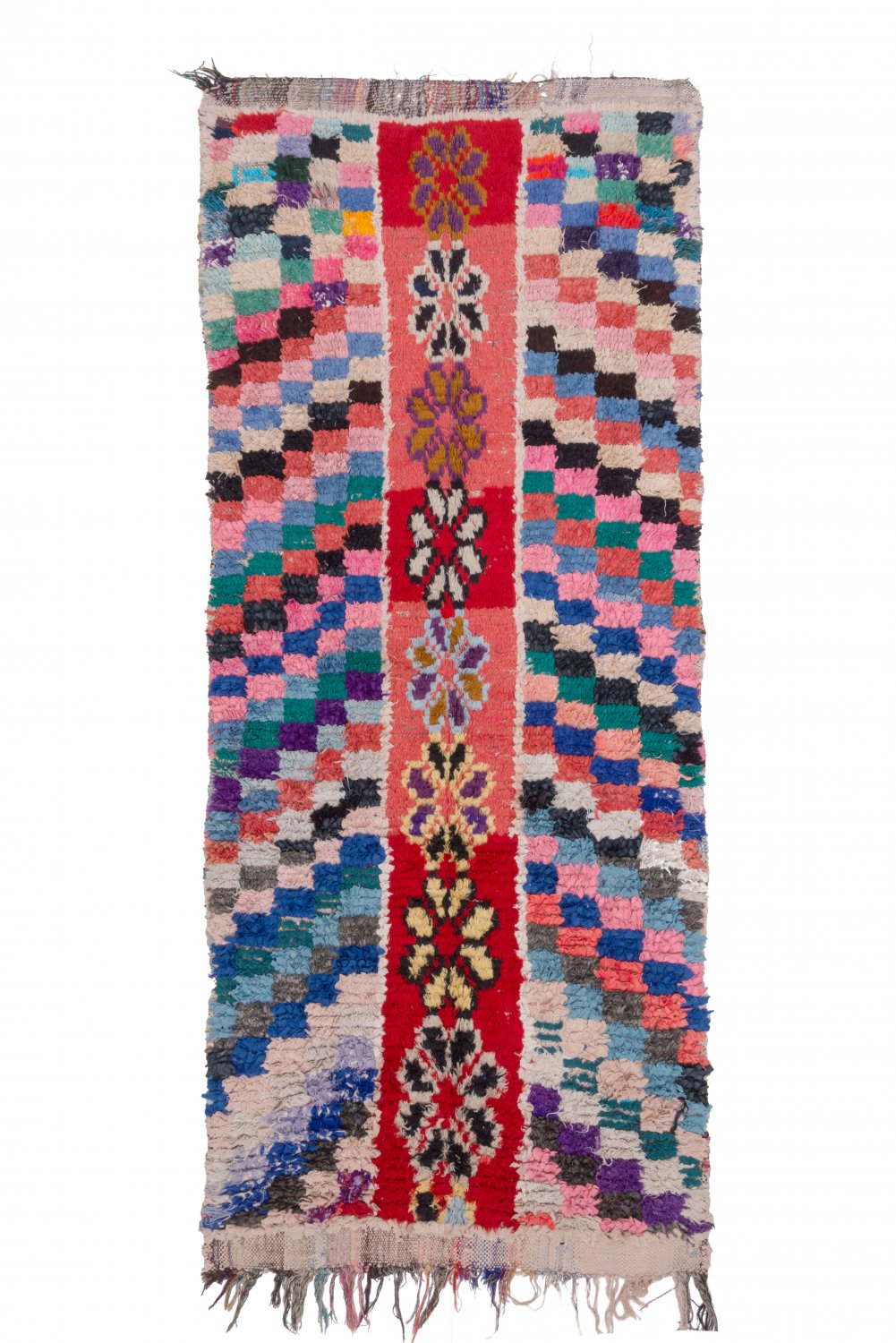 Boucehrouite-tæppet er endnu et tæppe i rækken af fantastiske tæppekreationer fra Marokko. Boucherouite tæppet er et genbrugstæppe der laves af tidligere anvendte tekstiler, som uld, bomuld, garn, syntetiske fibre og andre tekstiler der kan genanvendes. Disse vidunderlige marokkanske genbrugstæpper er en konsekvens af forandringen der er sket i de seneste årtier i de marokkanske landsbyer, hvor gamle nomadekulturer er erstattet af fast landbrug og andre moderne beskæftigelser i landsbyen. Det har ført til, at ulden fra fårene, der er materialet i Beni Ourain- og Azilal-tæpperne, er blevet endnu mere sjældne. Det er derfor blevet endnu vigtigere at benytte tidligere anvendte tekstiler og det gør kvinderne i de marokkanske landsbyer på en fremragende måde. Farverne og mønstrene i Boucherouite tæppet kender vi fra Azilal tæppet og præcis som dette hænger Boucherouite tæppet også på mange kunstudstilllinger rundt omkring i verden.