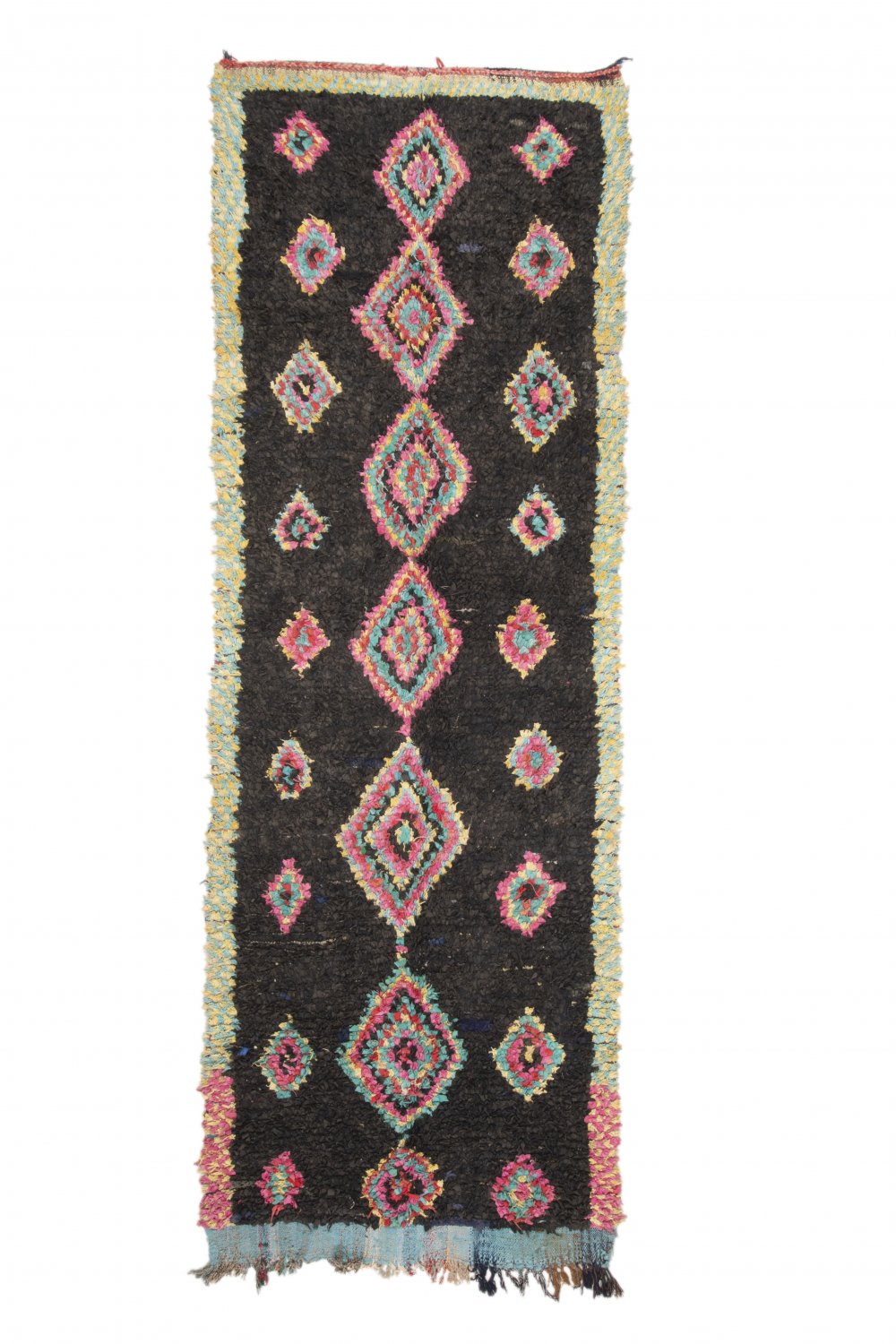 Boucehrouite-tæppet er endnu et tæppe i rækken af fantastiske tæppekreationer fra Marokko. Boucherouite tæppet er et genbrugstæppe der laves af tidligere anvendte tekstiler, som uld, bomuld, garn, syntetiske fibre og andre tekstiler der kan genanvendes. Disse vidunderlige marokkanske genbrugstæpper er en konsekvens af forandringen der er sket i de seneste årtier i de marokkanske landsbyer, hvor gamle nomadekulturer er erstattet af fast landbrug og andre moderne beskæftigelser i landsbyen. Det har ført til, at ulden fra fårene, der er materialet i Beni Ourain- og Azilal-tæpperne, er blevet endnu mere sjældne. Det er derfor blevet endnu vigtigere at benytte tidligere anvendte tekstiler og det gør kvinderne i de marokkanske landsbyer på en fremragende måde. Farverne og mønstrene i Boucherouite tæppet kender vi fra Azilal tæppet og præcis som dette hænger Boucherouite tæppet også på mange kunstudstilllinger rundt omkring i verden.