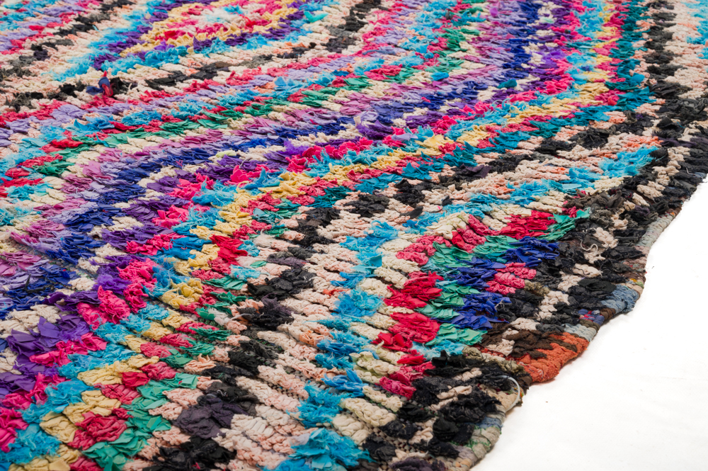 Boucehrouite-tæppet er endnu et tæppe i rækken af fantastiske tæppekreationer fra Marokko. Boucherouite tæppet er et genbrugstæppe der laves af tidligere anvendte tekstiler, som uld, bomuld, garn, syntetiske fibre og andre tekstiler der kan genanvendes. Disse vidunderlige marokkanske genbrugstæpper er en konsekvens af forandringen der er sket i de seneste årtier i de marokkanske landsbyer, hvor gamle nomadekulturer er erstattet af fast landbrug og andre moderne beskæftigelser i landsbyen. Det har ført til, at ulden fra fårene, der er materialet i Beni Ourain- og Azilal-tæpperne, er blevet endnu mere sjældne. Det er derfor blevet endnu vigtigere at benytte tidligere anvendte tekstiler og det gør kvinderne i de marokkanske landsbyer på en fremragende måde. Farverne og mønstrene i Boucherouite tæppet kender vi fra Azilal tæppet og præcis som dette hænger Boucherouite tæppet også på mange kunstudstilllinger rundt omkring i verden.