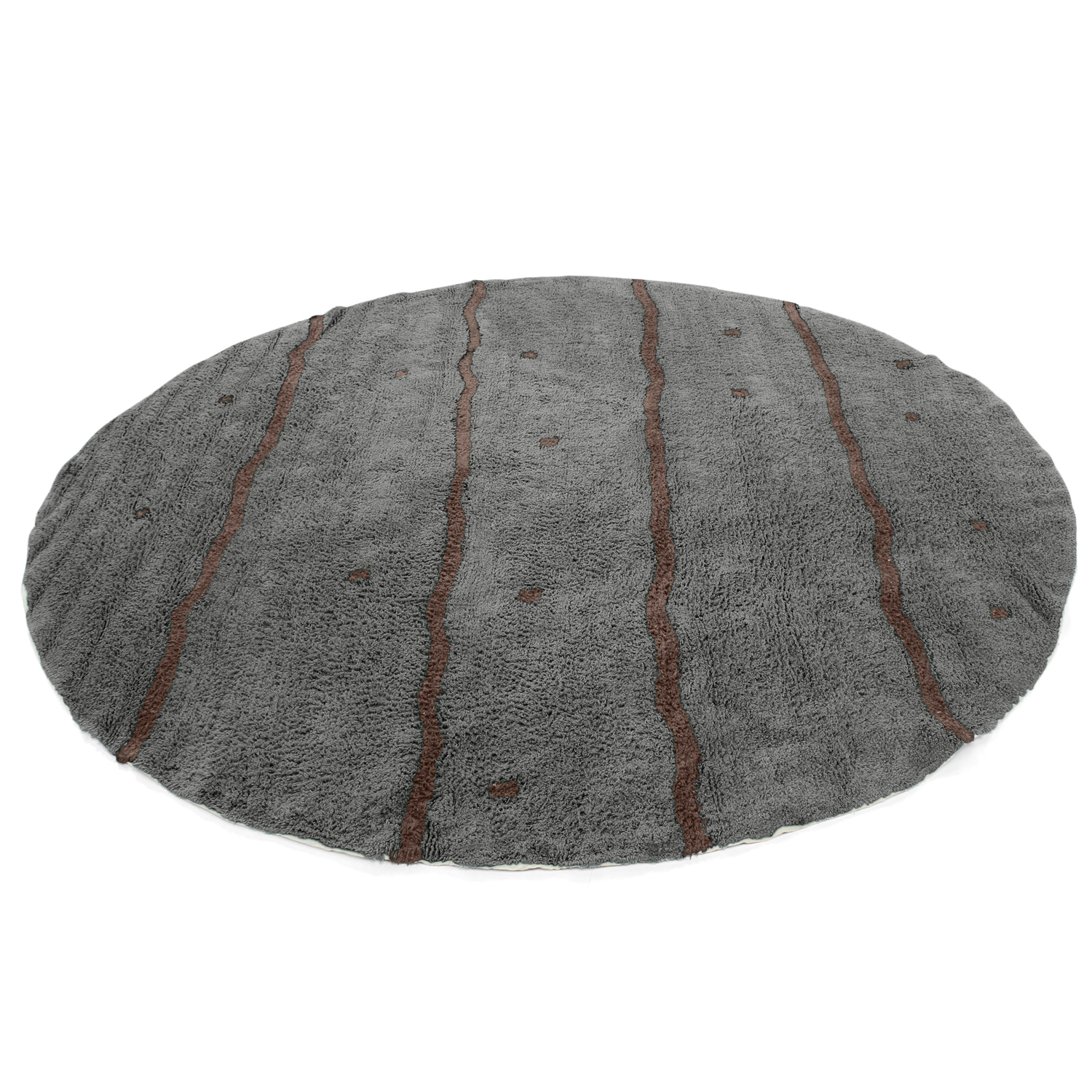 Rundt tæppe - Leora Natural Cotton Shaggy (sort/brun)