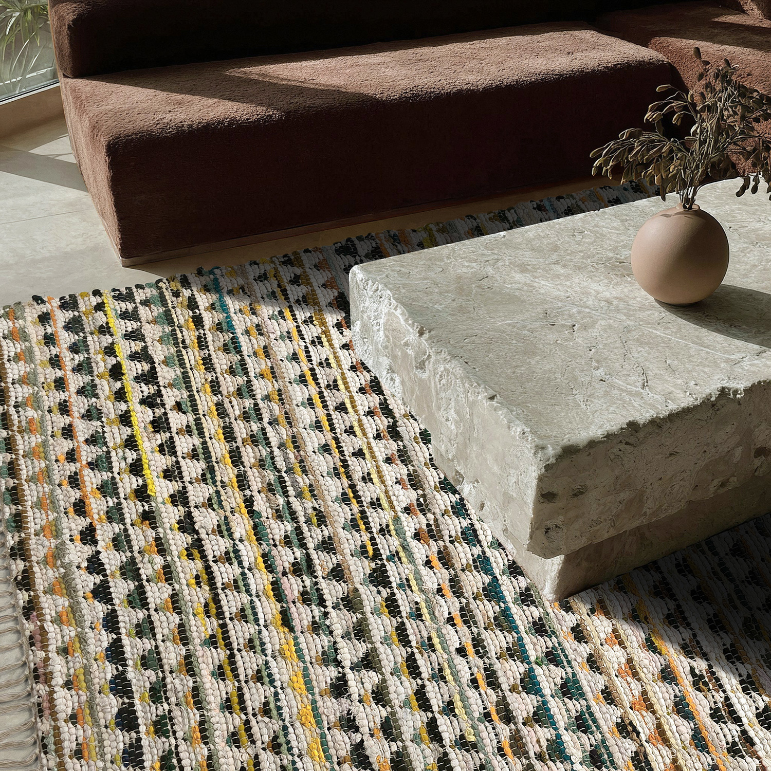 Klassisk kludetæppe i hyggelige farver, der skaber en varm og indbydende stemning. Den slidstærke og lette vedligeholdelse gør det ideelt til entreen eller køkkenet – hvor både stil og funktion har betydning i hverdagen.