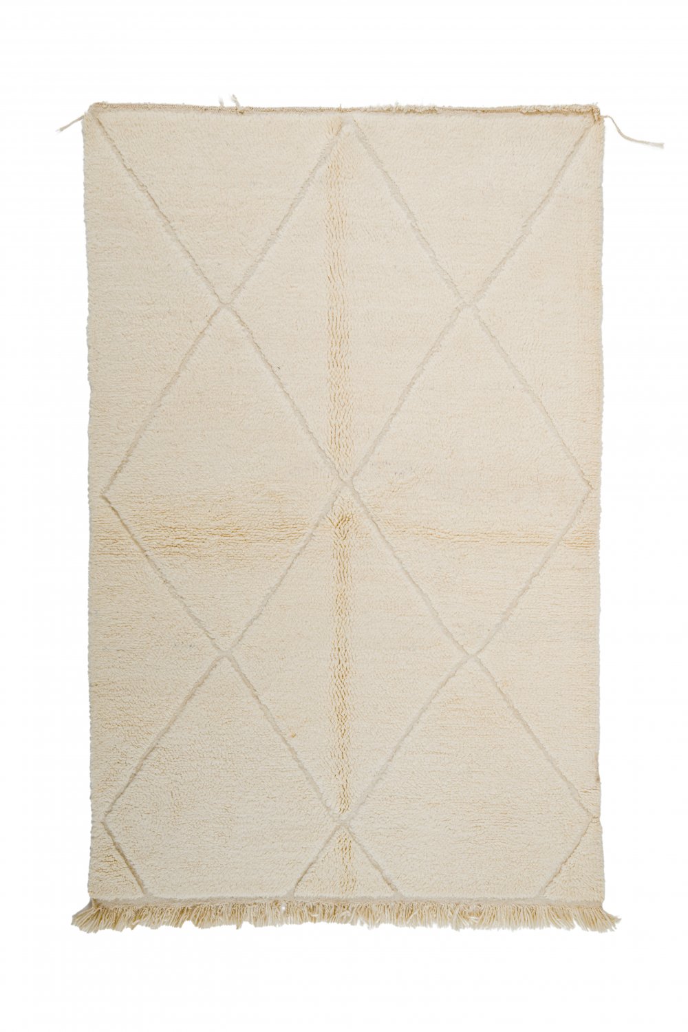 Ulden fra fårene i Atlasbjergene er virkelig enestående og et Beni Ourain tæppe fremstilles kun af denne rene uld og dens naturlige farver, der er både hvide, elfenbenshvide og naturfarvede. Et ægte Beni Ourain tæppe er vævet med enkle og avancerede mønstre og er stærkt eftertragtet af designere og forbrugere i hele verden. Et marokkansk Beni Ourain tæppe er et kunstværk på gulvet. Hvis det passes korrekt vil det beholde sine smukke farver, ulden bliver ikke slidt op. Det bliver et tæppe der føres videre i generationer.