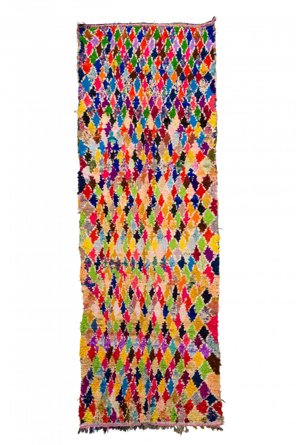 Boucehrouite-tæppet er endnu et tæppe i rækken af fantastiske tæppekreationer fra Marokko. Boucherouite tæppet er et genbrugstæppe der laves af tidligere anvendte tekstiler, som uld, bomuld, garn, syntetiske fibre og andre tekstiler der kan genanvendes. Disse vidunderlige marokkanske genbrugstæpper er en konsekvens af forandringen der er sket i de seneste årtier i de marokkanske landsbyer, hvor gamle nomadekulturer er erstattet af fast landbrug og andre moderne beskæftigelser i landsbyen. Det har ført til, at ulden fra fårene, der er materialet i Beni Ourain- og Azilal-tæpperne, er blevet endnu mere sjældne. Det er derfor blevet endnu vigtigere at benytte tidligere anvendte tekstiler og det gør kvinderne i de marokkanske landsbyer på en fremragende måde. Farverne og mønstrene i Boucherouite tæppet kender vi fra Azilal tæppet og præcis som dette hænger Boucherouite tæppet også på mange kunstudstilllinger rundt omkring i verden.