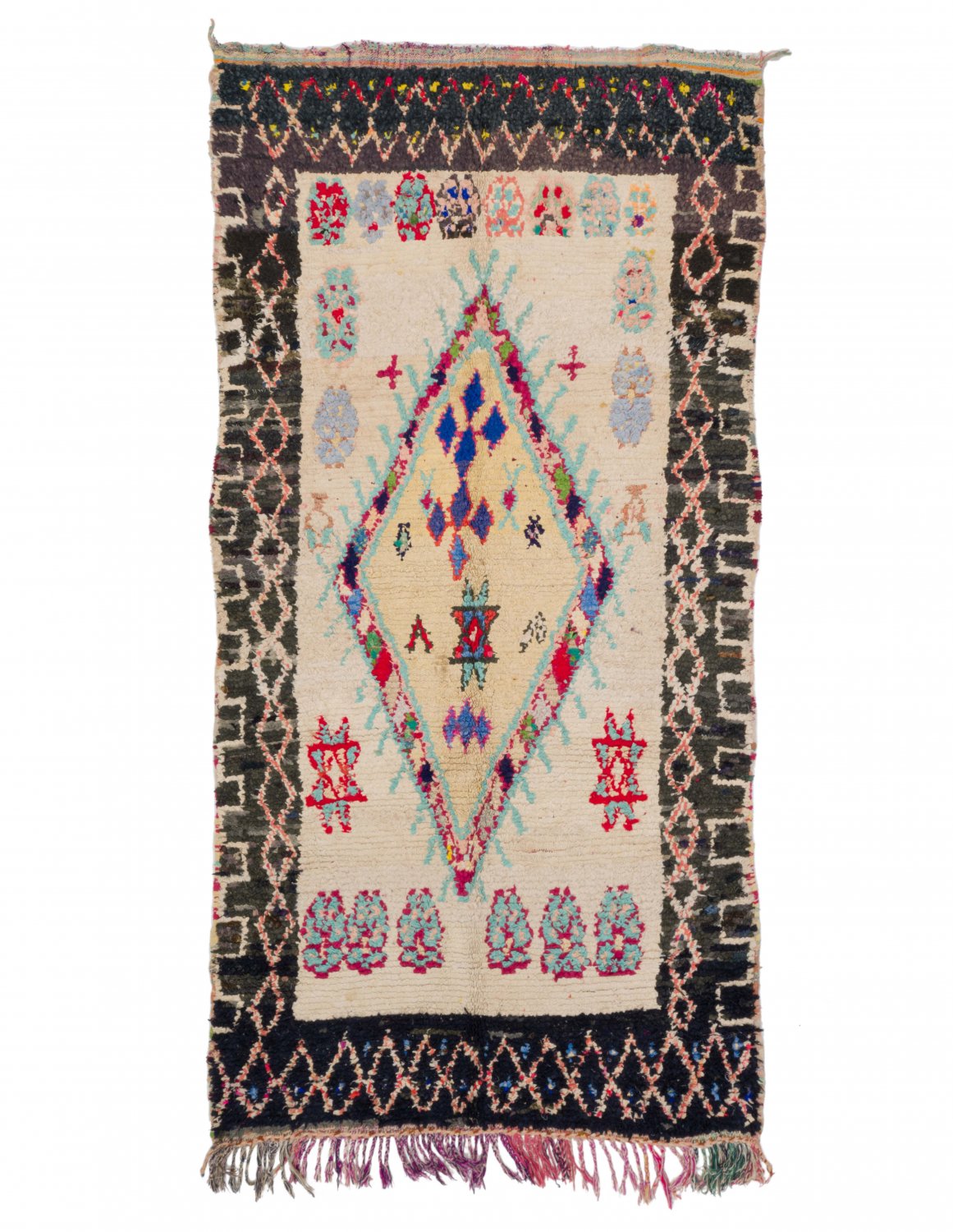 Boucehrouite-tæppet er endnu et tæppe i rækken af fantastiske tæppekreationer fra Marokko. Boucherouite tæppet er et genbrugstæppe der laves af tidligere anvendte tekstiler, som uld, bomuld, garn, syntetiske fibre og andre tekstiler der kan genanvendes. Disse vidunderlige marokkanske genbrugstæpper er en konsekvens af forandringen der er sket i de seneste årtier i de marokkanske landsbyer, hvor gamle nomadekulturer er erstattet af fast landbrug og andre moderne beskæftigelser i landsbyen. Det har ført til, at ulden fra fårene, der er materialet i Beni Ourain- og Azilal-tæpperne, er blevet endnu mere sjældne. Det er derfor blevet endnu vigtigere at benytte tidligere anvendte tekstiler og det gør kvinderne i de marokkanske landsbyer på en fremragende måde. Farverne og mønstrene i Boucherouite tæppet kender vi fra Azilal tæppet og præcis som dette hænger Boucherouite tæppet også på mange kunstudstilllinger rundt omkring i verden.