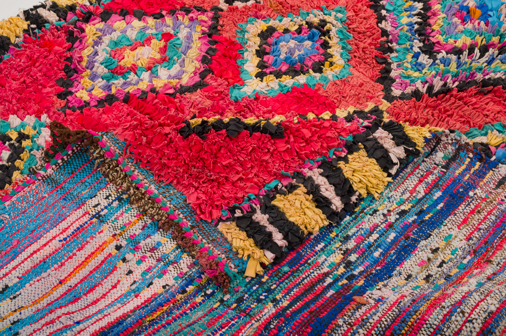 Boucehrouite-tæppet er endnu et tæppe i rækken af fantastiske tæppekreationer fra Marokko. Boucherouite tæppet er et genbrugstæppe der laves af tidligere anvendte tekstiler, som uld, bomuld, garn, syntetiske fibre og andre tekstiler der kan genanvendes. Disse vidunderlige marokkanske genbrugstæpper er en konsekvens af forandringen der er sket i de seneste årtier i de marokkanske landsbyer, hvor gamle nomadekulturer er erstattet af fast landbrug og andre moderne beskæftigelser i landsbyen. Det har ført til, at ulden fra fårene, der er materialet i Beni Ourain- og Azilal-tæpperne, er blevet endnu mere sjældne. Det er derfor blevet endnu vigtigere at benytte tidligere anvendte tekstiler og det gør kvinderne i de marokkanske landsbyer på en fremragende måde. Farverne og mønstrene i Boucherouite tæppet kender vi fra Azilal tæppet og præcis som dette hænger Boucherouite tæppet også på mange kunstudstilllinger rundt omkring i verden.