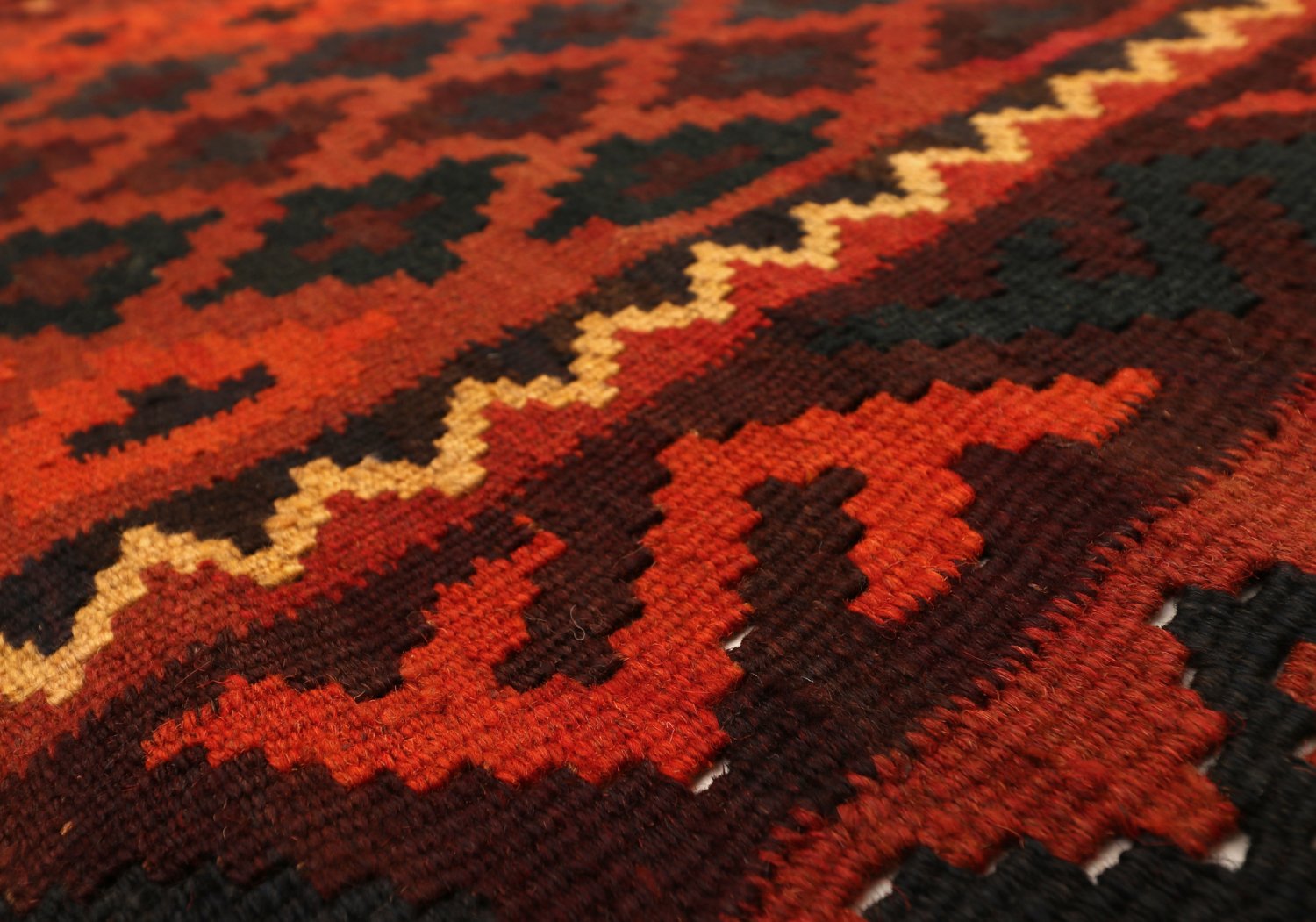 Orientalsk kelimtæppe forener en fladvævet struktur med naturlig uld – let og fleksibelt, nemt at placere i entré, stue eller under spisebordet. Den slanke profil gør det også oplagt til layering oven på større tæpper.