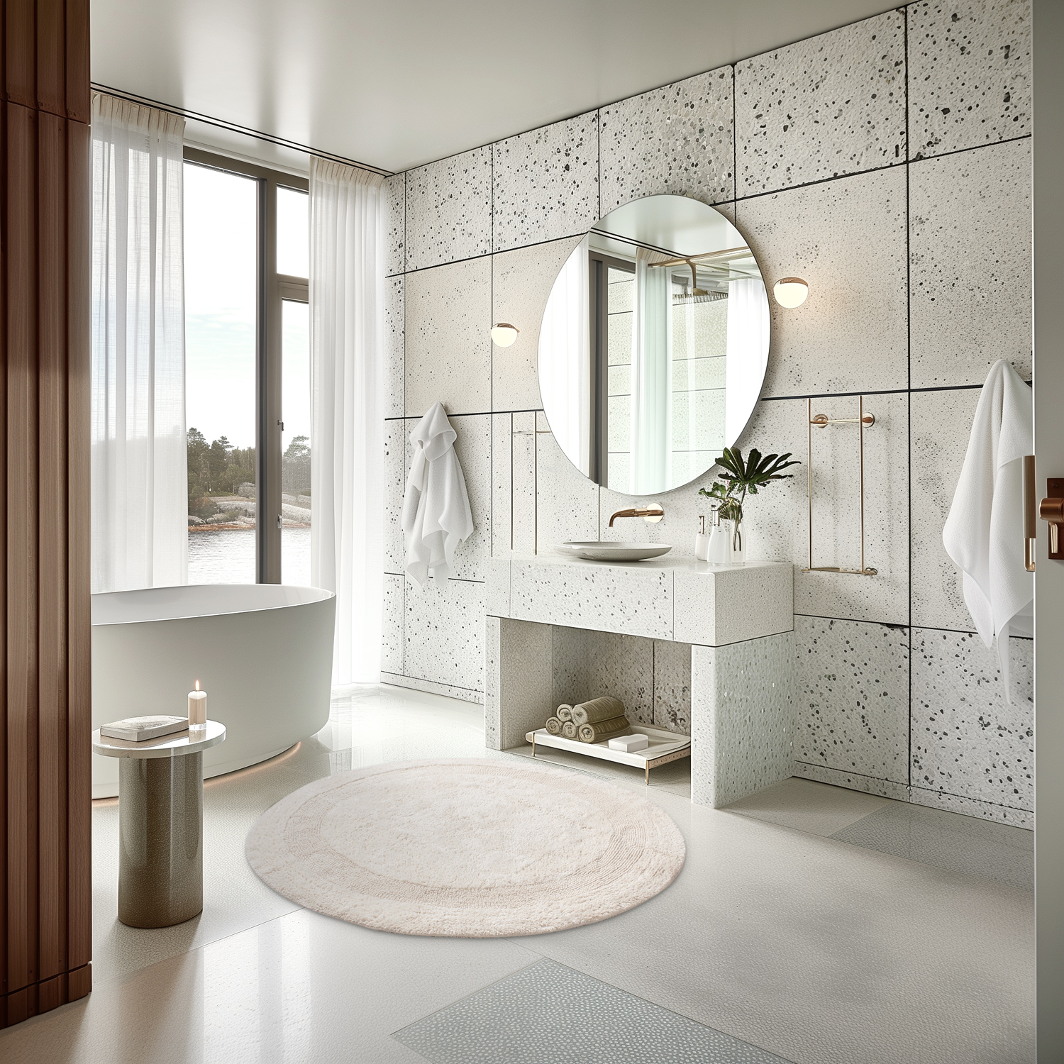 Tuftet badeværelsestæppe i 100% bomuld - den perfekte kombination af luksus og funktionalitet til dit badeværelse.