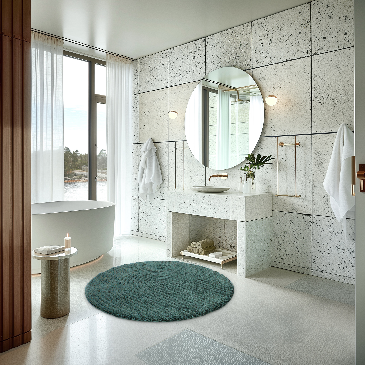 Tuftet badeværelsestæppe i 100% bomuld - den perfekte kombination af luksus og funktionalitet til dit badeværelse.