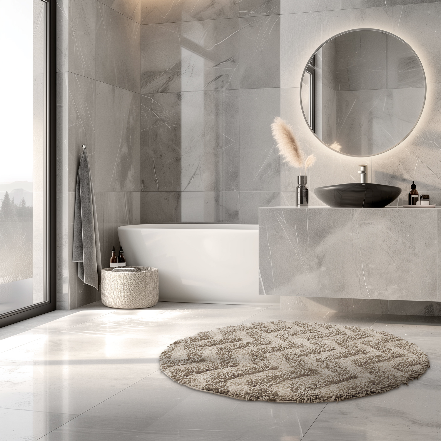 Tuftet badeværelsestæppe i 100% bomuld - den perfekte kombination af luksus og funktionalitet til dit badeværelse.