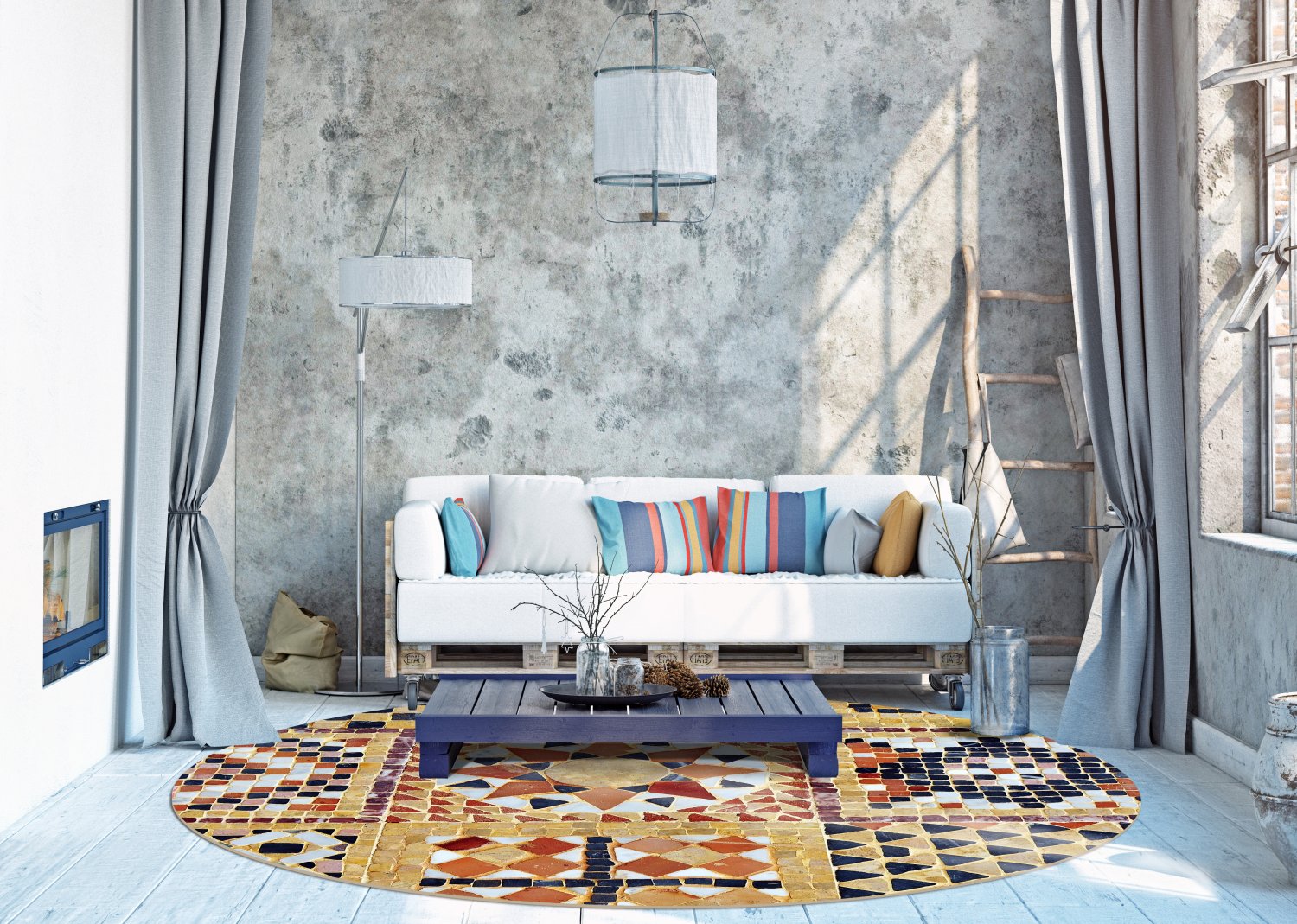 Rundt tæppe - Bosa (multi)