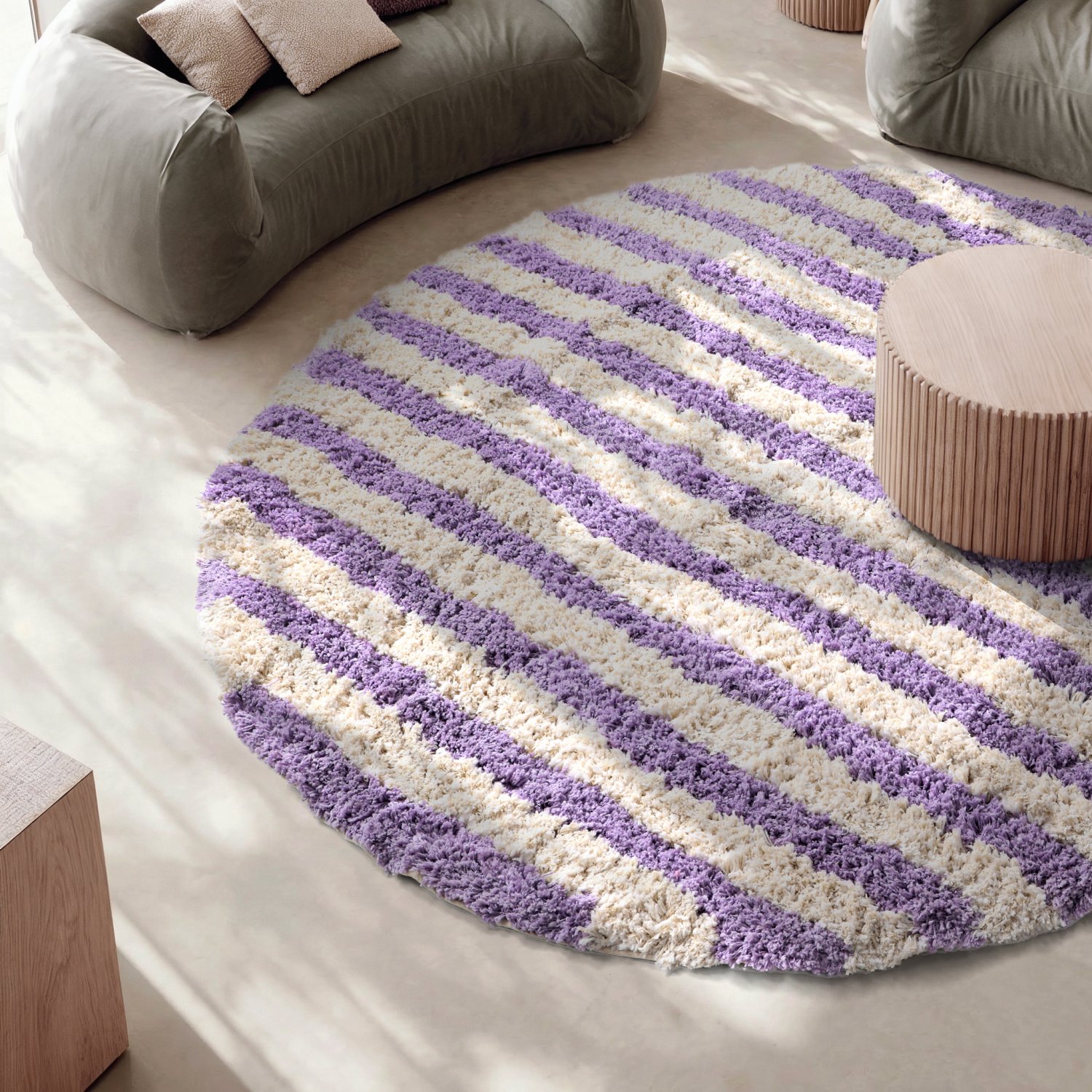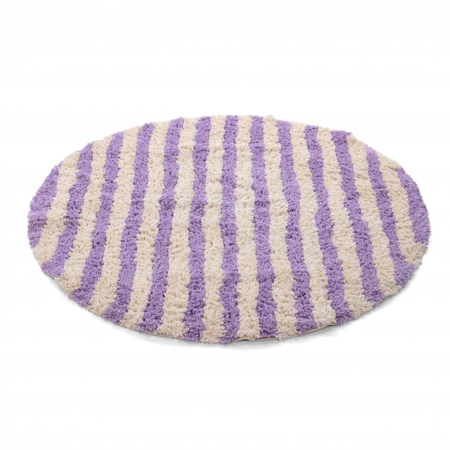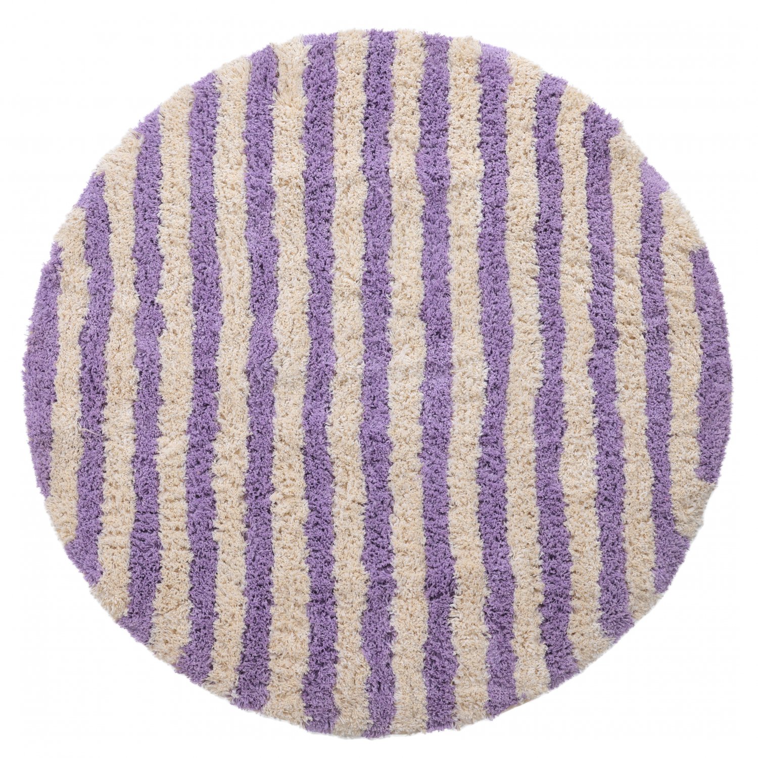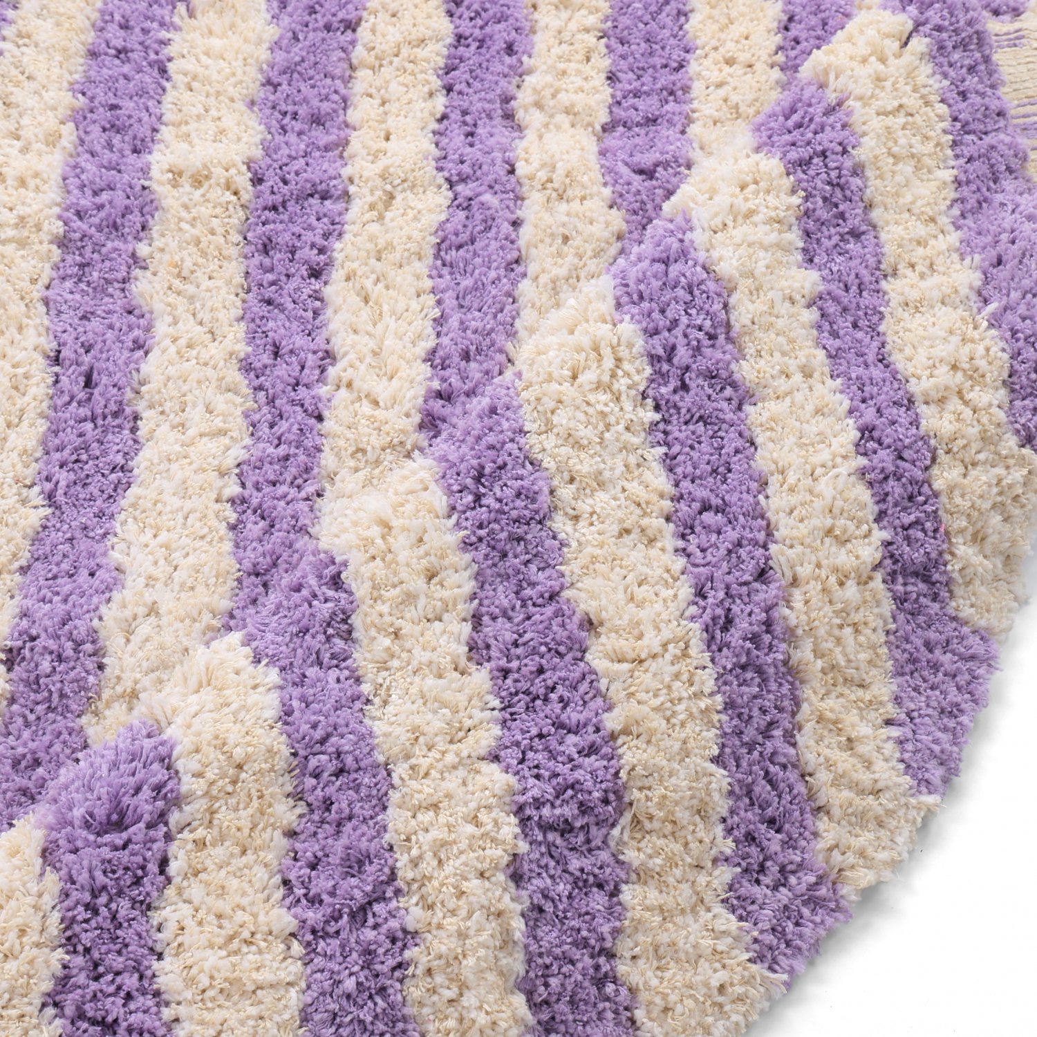Rundt tæppe - Thira Stripe Cotton Shaggy (fløde/lys lilla)