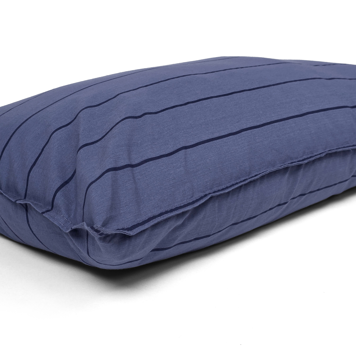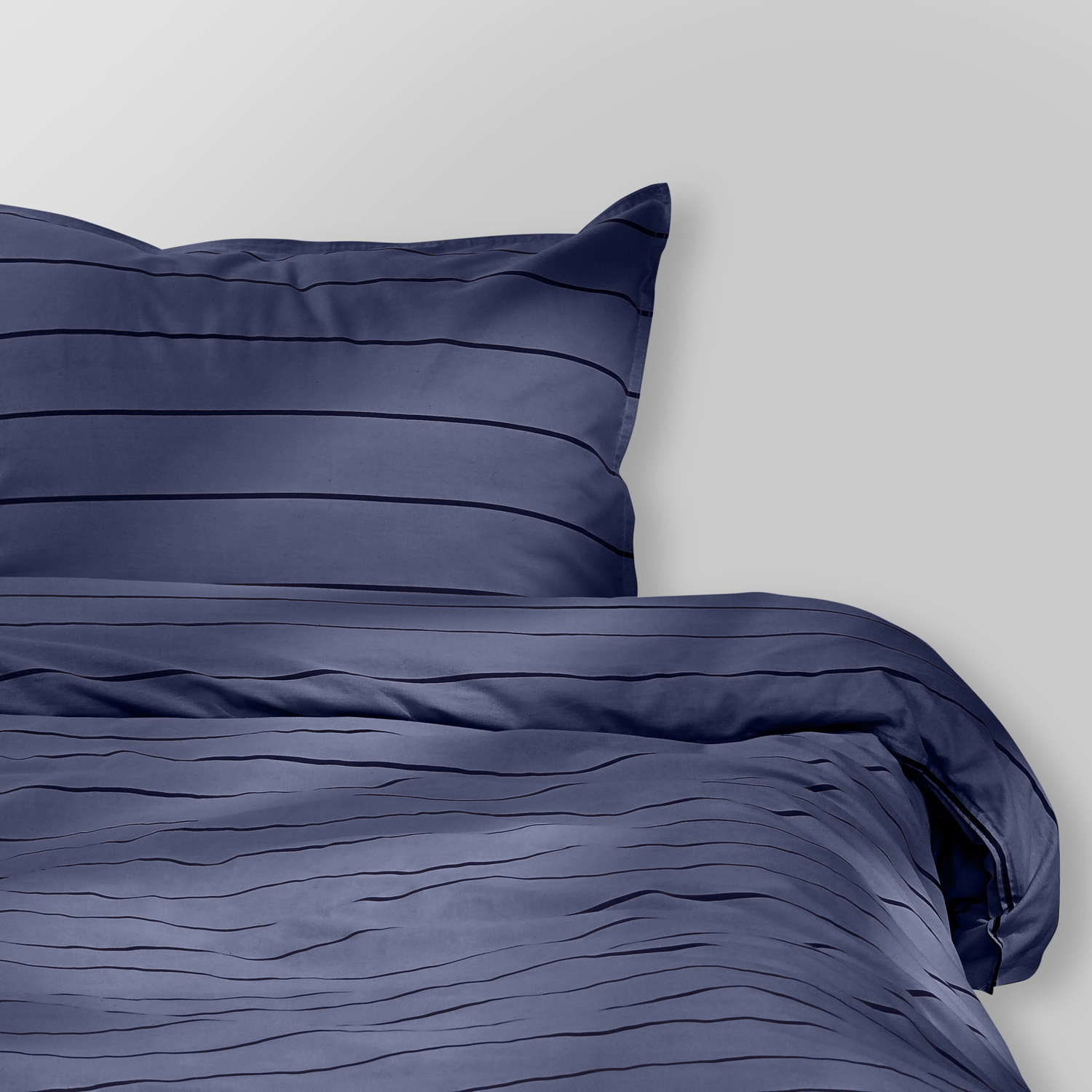 Oplev komforten af vores pudebetræk i 100 % BCI-certificeret bomuld, der giver en blød og behagelig følelse mod huden. Fremstillet af højkvalitets, åndbart og holdbart materiale, tilføjer det en luksuriøs dimension til din søvn. Better Cotton Initiative-certificeringen sikrer, at bomulden dyrkes ansvarligt, med hensyn til både miljøet og de mennesker, der producerer den. Pudebetrækket har mørkeblå striber og fås i flere farver, så det nemt kan matches med forskellige indretningsstile og skabe en harmonisk atmosfære i dit soveværelse.
