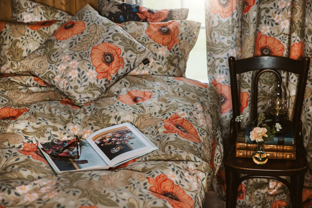 Sengetøjssæt fra kollektionen "Poppy", skabt i samarbejde med den talentfulde designer Hanna Wendelbo. I skabelsen af kollektionen har Hanna fundet inspiration i naturens vidunderlige mangfoldighed og præsenterer i Poppy-kollektionen et dejligt blomstermønster, der gennemsyrer hver detalje.