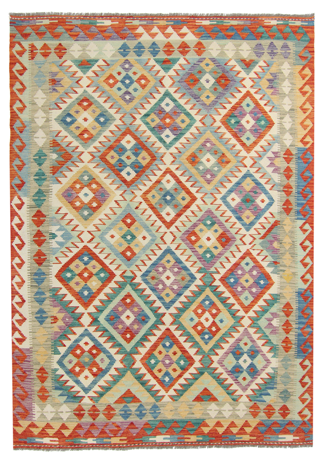 Orientalsk kelimtæppe forener en fladvævet struktur med naturlig uld – let og fleksibelt, nemt at placere i entré, stue eller under spisebordet. Den slanke profil gør det også oplagt til layering oven på større tæpper.