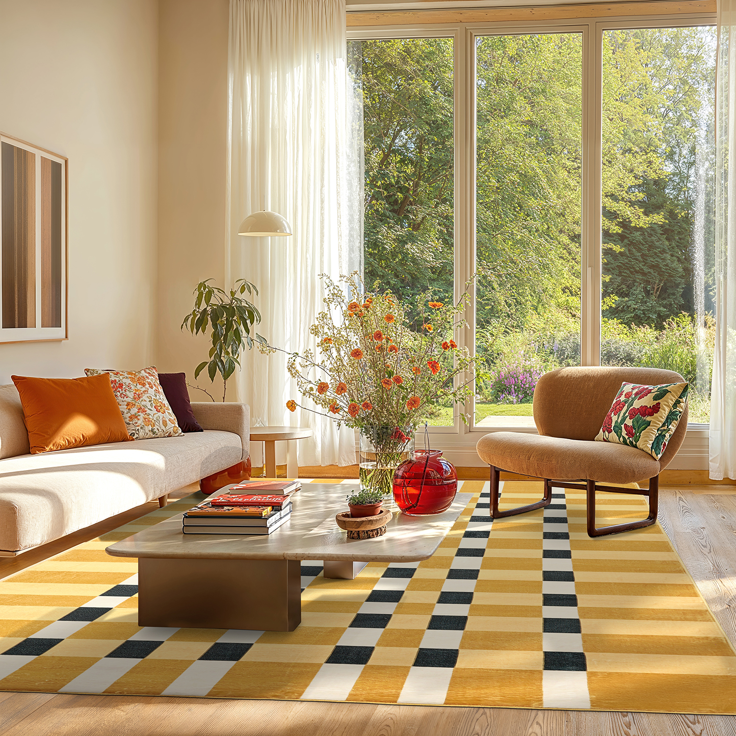Mønstret er inspireret af moderne designere og nutidens trends, og tæppet er en del af vores populære Art-kollektion. Takket være den maskinvævede produktion kan vi tilbyde høj kvalitet til en rigtig god pris – du får et tæppe, der både ser dyrere ud og føles mere luksuriøst, end prisen antyder.