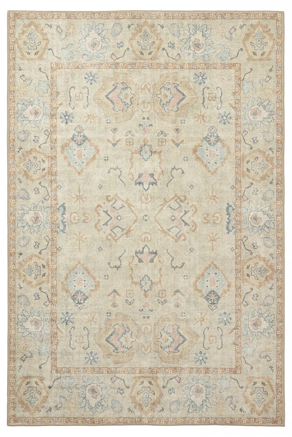 Skab en tidløs stemning i hjemmet med dette fladvævede tæppe i elegant vintage-stil. Det slidstærke og tynde design gør tæppet nemt at placere og let at vedligeholde, mens det smukt patinerede mønster giver rummet varme og karakter. Perfekt under spisebordet, i stuen eller entreen – et tæppe, der forener praktisk funktion med klassisk design.
