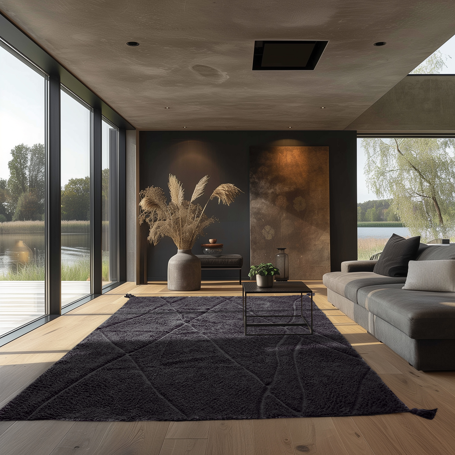 Ryatæpper - Andrea Natural Cotton Shaggy (sort)