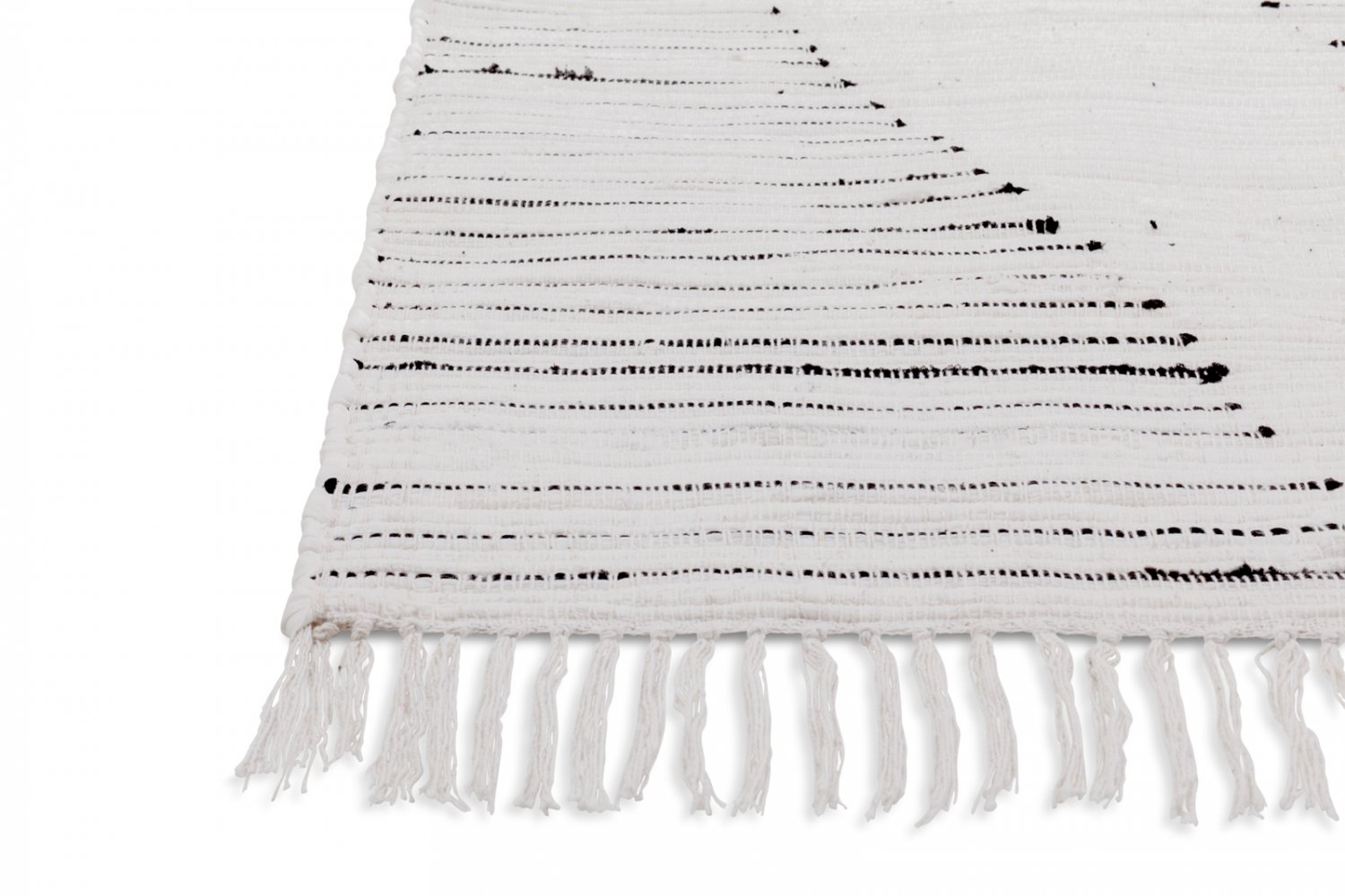 Håndvævet tæppe i 80% polyester 20% bomuld.
