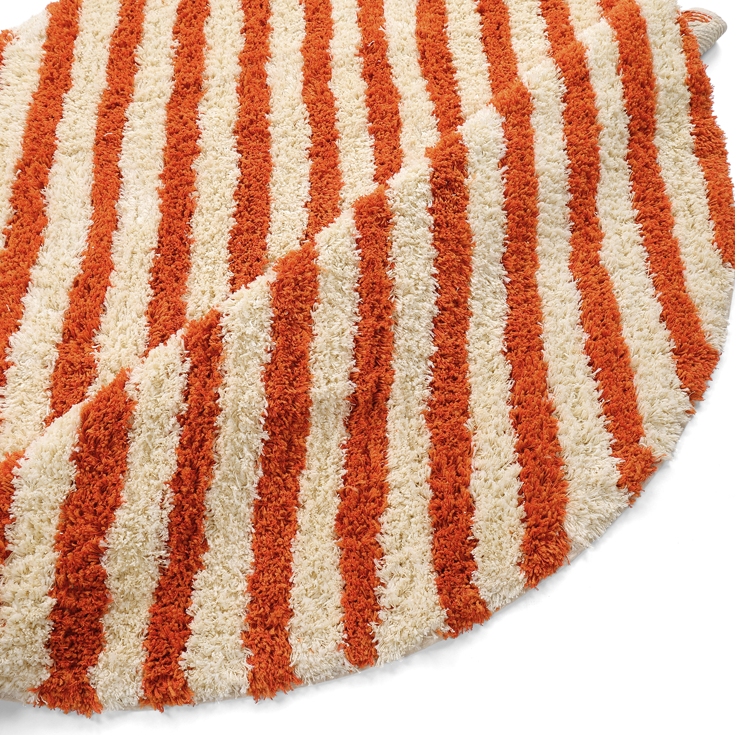Rundt tæppe - Thira Stripe Cotton Shaggy (lysegul/lys orange)