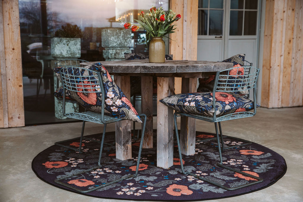 Gulvtæppe fra kollektionen "Poppy", skabt i samarbejde med den talentfulde designer Hanna Wendelbo. I skabelsen af kollektionen har Hanna fundet inspiration i naturens vidunderlige mangfoldighed og præsenterer i Poppy-kollektionen et dejligt blomstermønster, der gennemsyrer hver detalje.