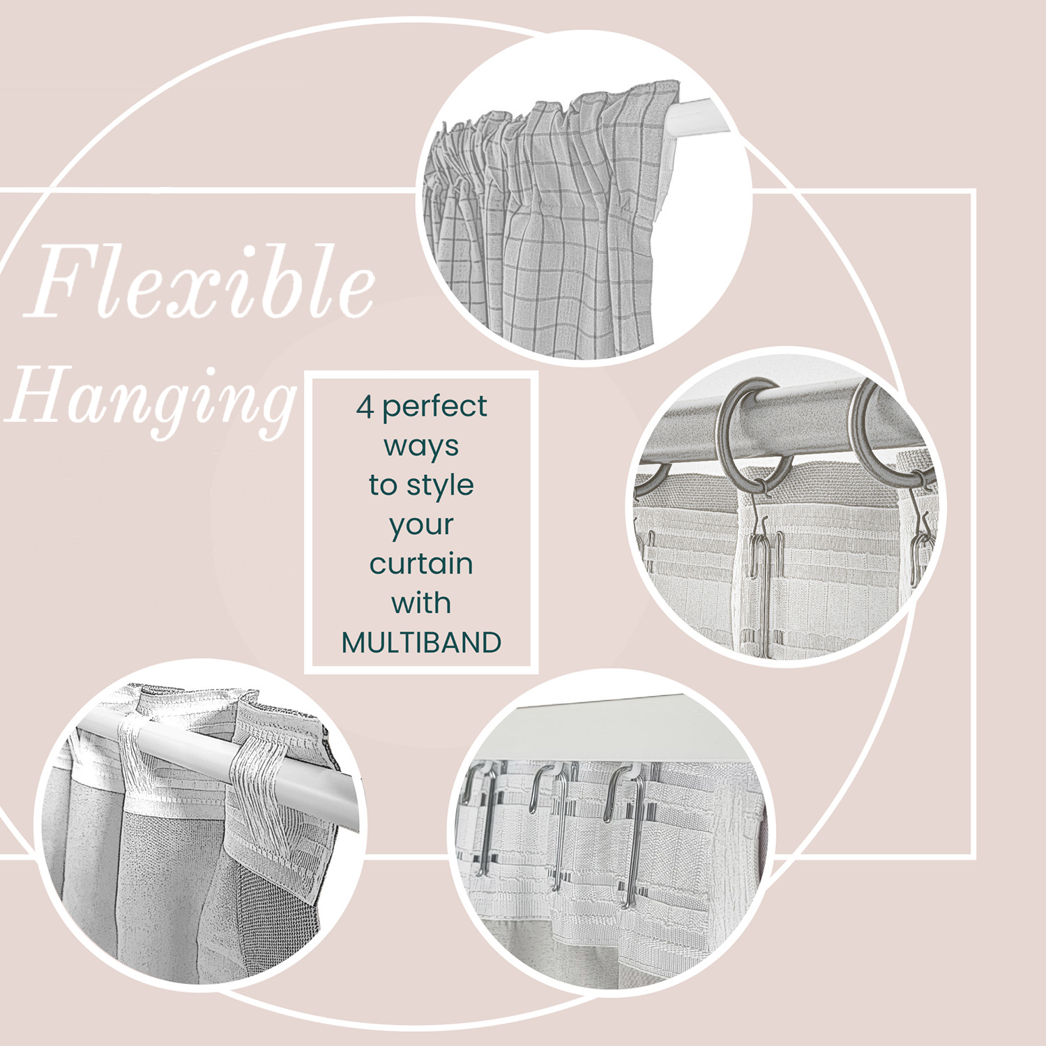 Alle gardiner fra Trendcarpet er lavet med multiwaybånd for at gøre ophængningen så let som muligt, uanset hvilken slags gardinstang du bruger.
