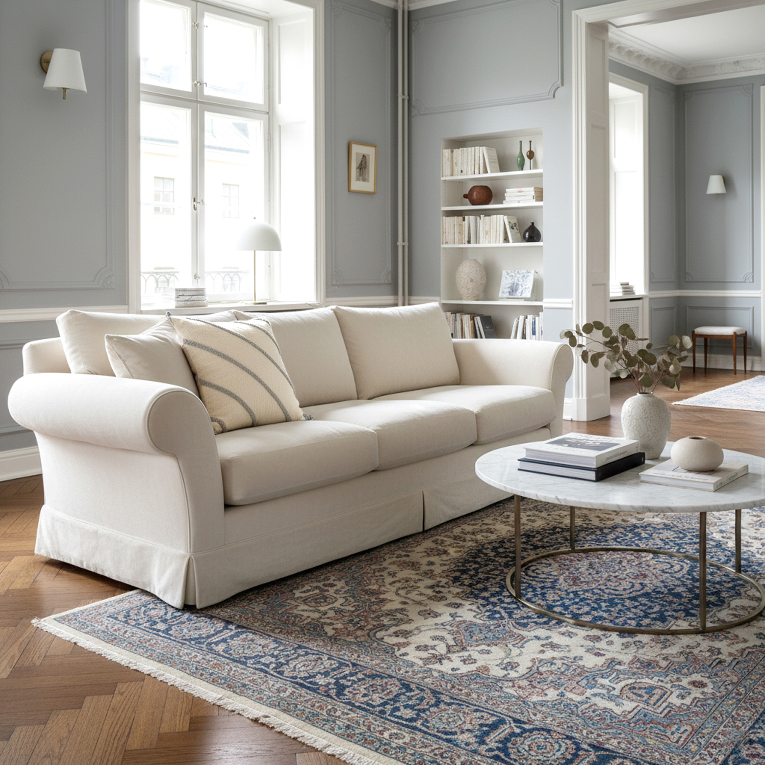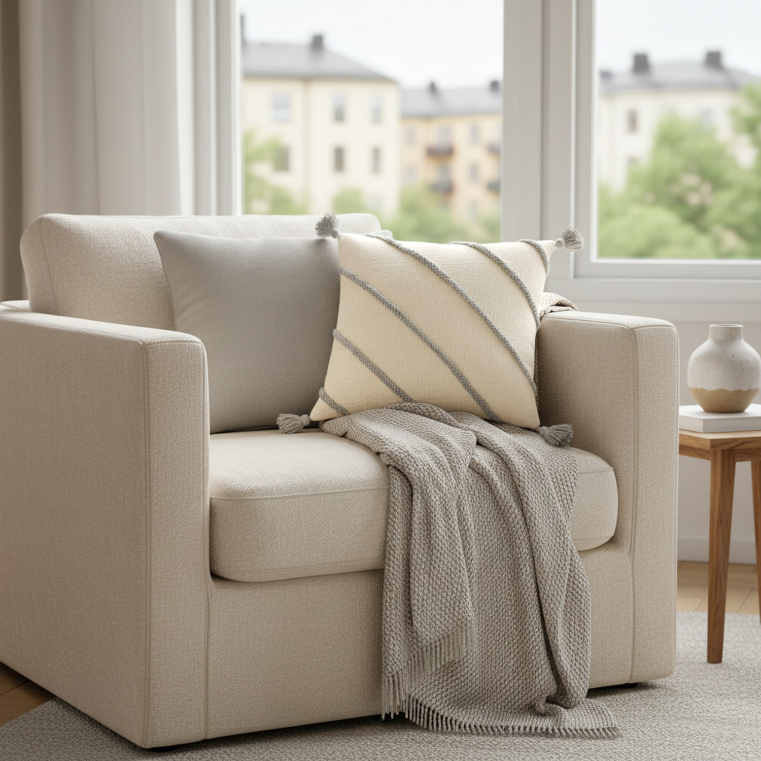 Pudebetræk - Montreux (off white/grå)