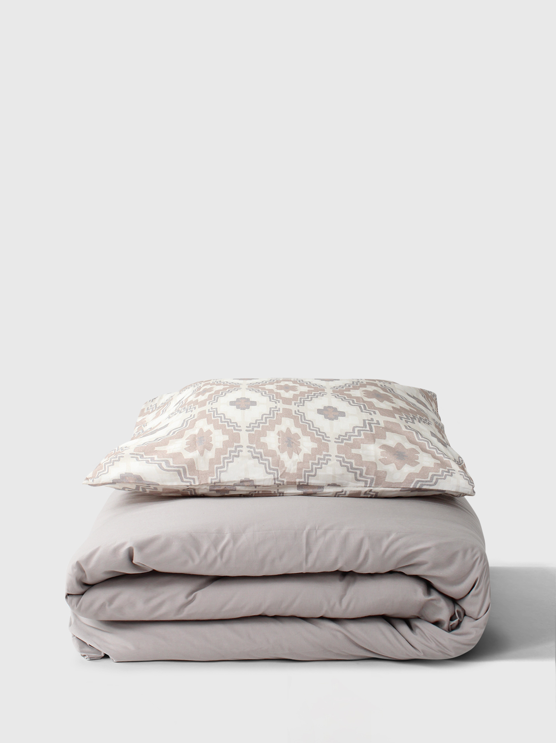 Dynebetrækket har mønster på den ene side og ensfarvet på den anden, hvilket giver to unikke udseender i ét. Der er åbninger i øverste hjørner til nemt at sætte dynebetrækket over dynen.