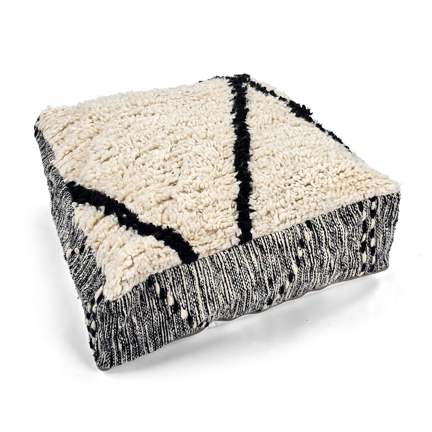 Disse fantastiske puffer i ægte Beni Ourain-tæppe fra Marokko er et must-have i ethvert hjem. De er funktionelle, bekvemme og formbare at sidde på. Og deres skønhed gør dem nemme at placere overalt i dit hjem.