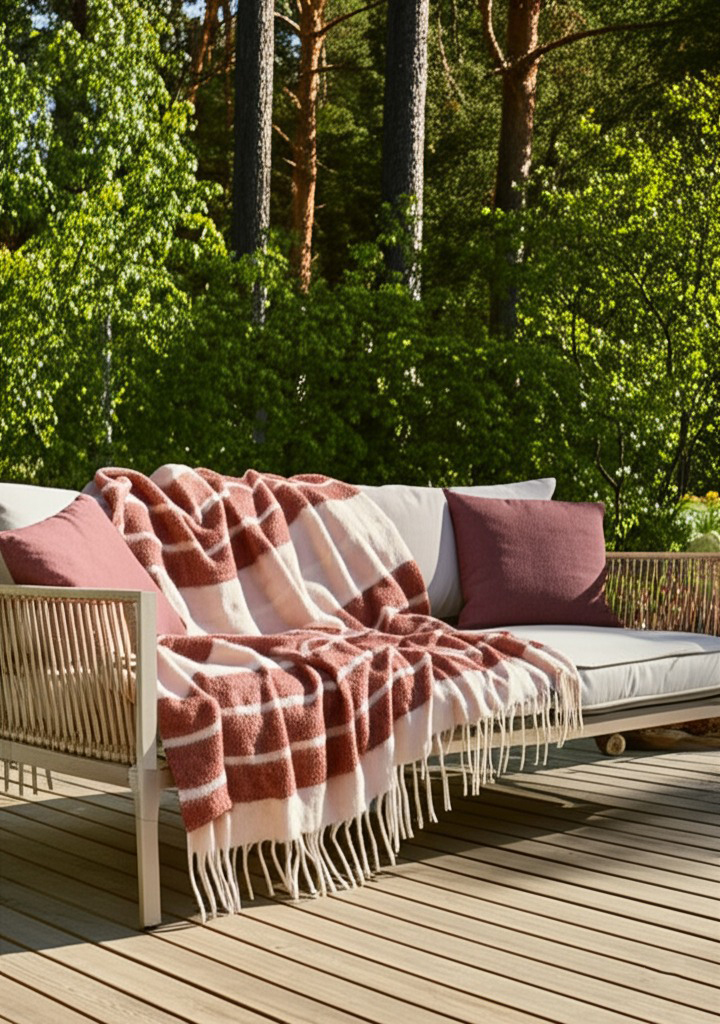 Blødt kast i en dejlig uldblanding med frynser på den korte side. De garnfarvede plaider fås i flere mønstre og farver og kan med fordel matches med hinanden.